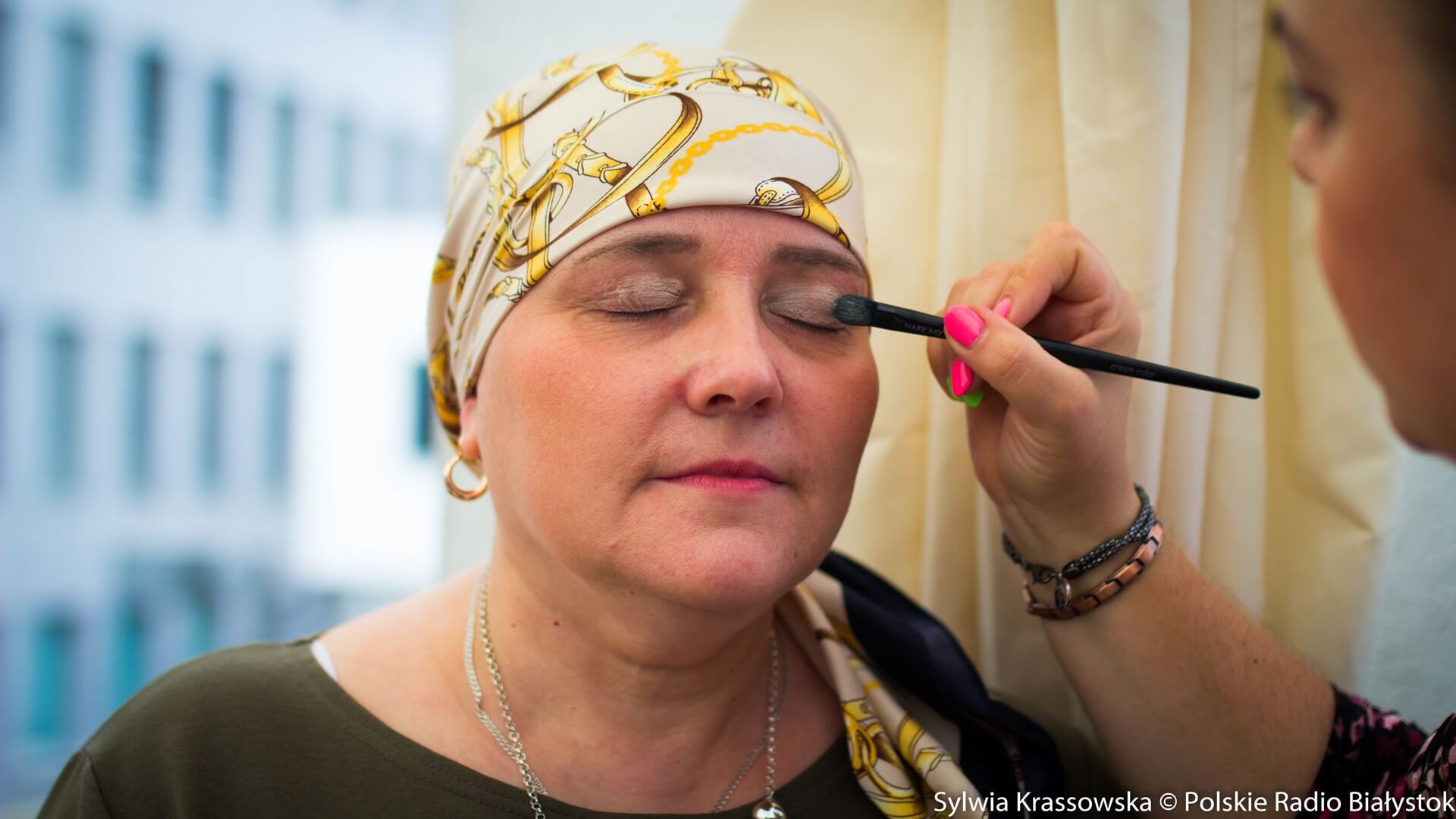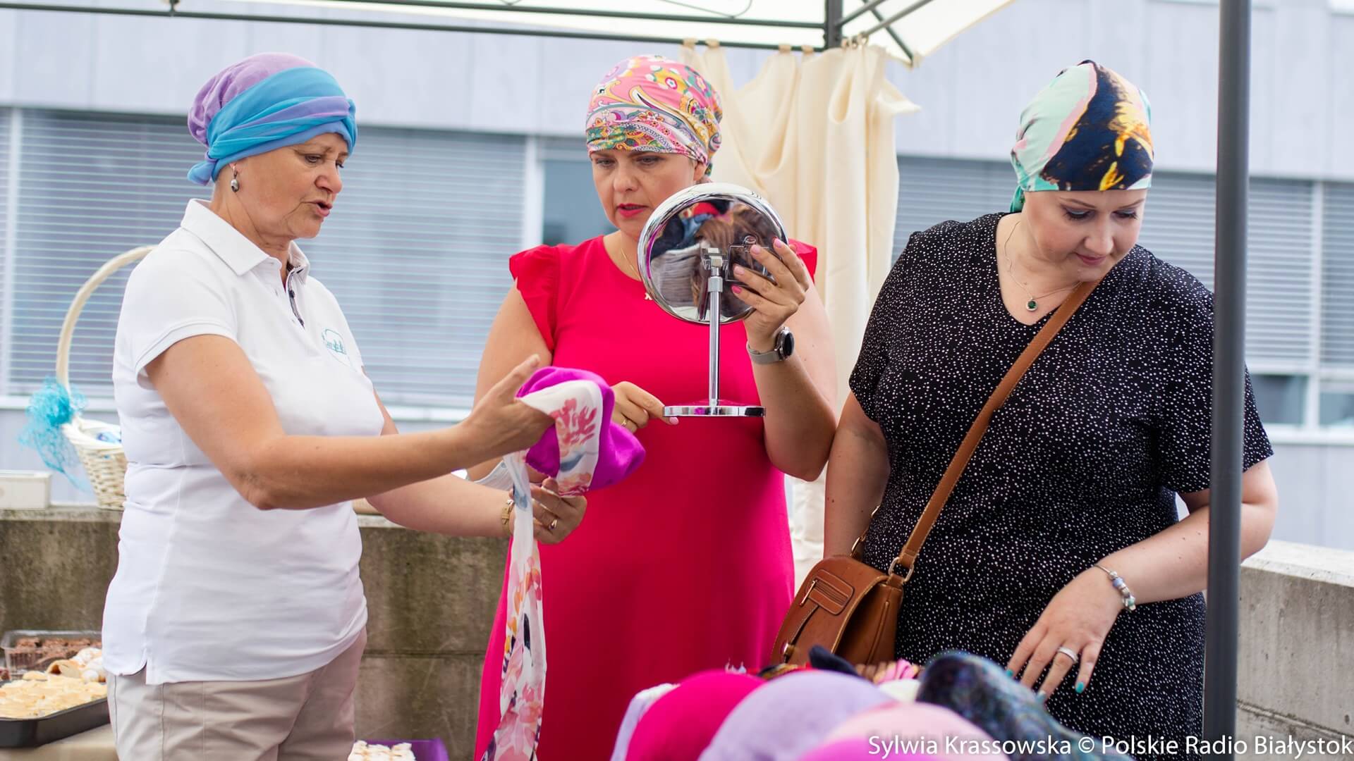 We wtorek (4.08) przed Uniwersyteckim Centrum Onkologii w Uniwersyteckim Szpitalu Klinicznym zainteresowane panie mogły przyjść, wybrać sobie nakrycie głowy, ale też zrobić makijaż i wziąć udział w sesji zdjęciowej.