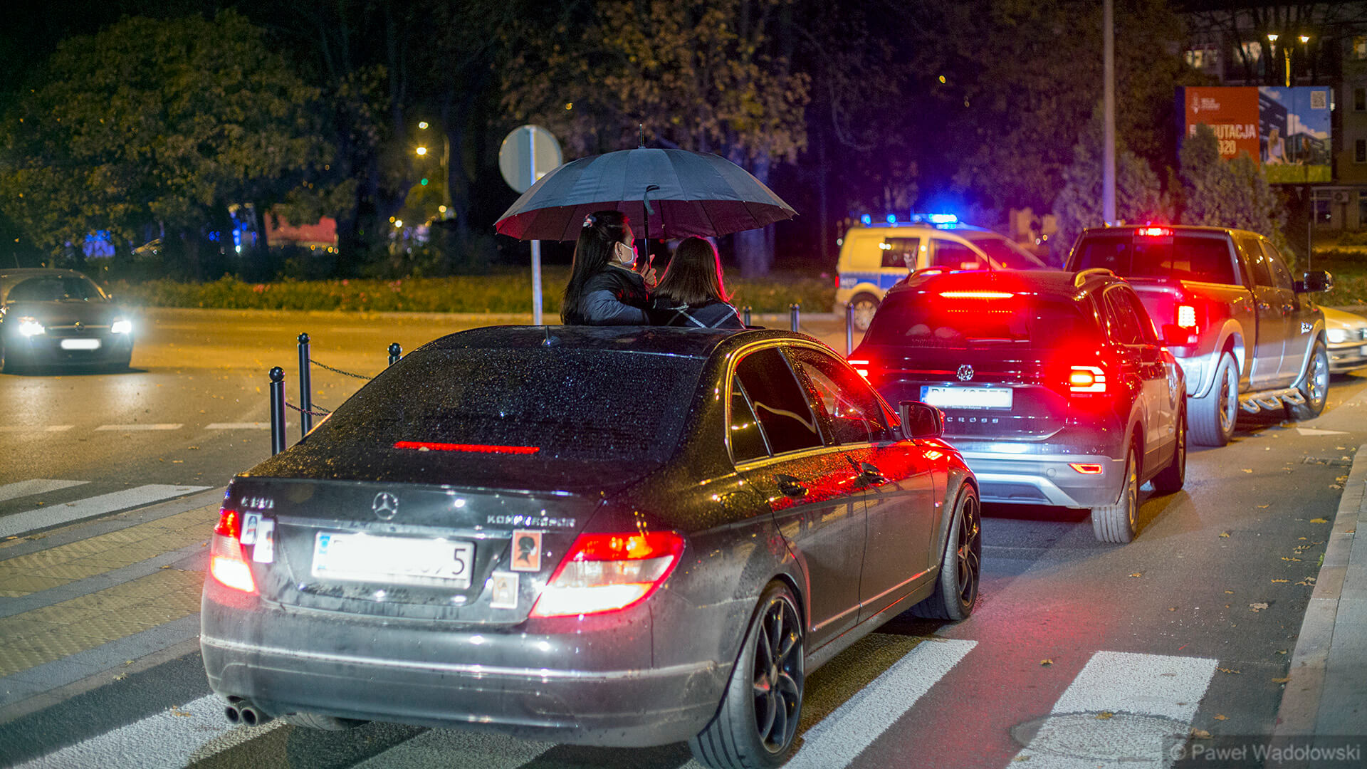Protest w Łomży przybrał dzisiaj zupełnie inną formę. Wcześniej protestujący spacerowali chodnikami wzdłuż głównych ulic w mieście, dzisiaj przesiedli się do samochodów. Pierwsze samochody można było zauważyć około godziny 19:00 na rondzie przy Placu Kościuszki. Policjanci będą kierować ruchem, jeśli protestujących będzie więcej - można zatem spodziewać się bardzo dużych utrudnień związanych z przejazdem przez Łomżę. Taka zmiana protestu wynika z tego, że organizatorzy dostali informację, że może dojść do próby zakłócenia ich przemarszu, stąd decyzja o tym, żeby przesiąść się do samochodów ze względu na bezpieczeństwo uczestników protestu - mówi z Łomży Paweł Wądołowski.