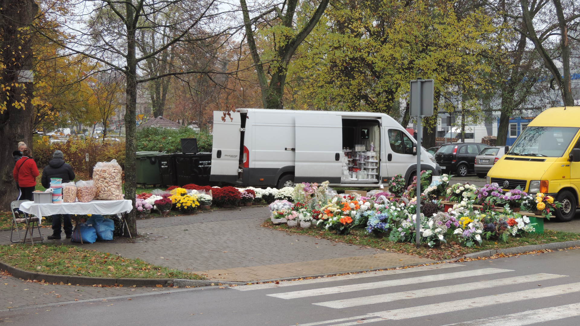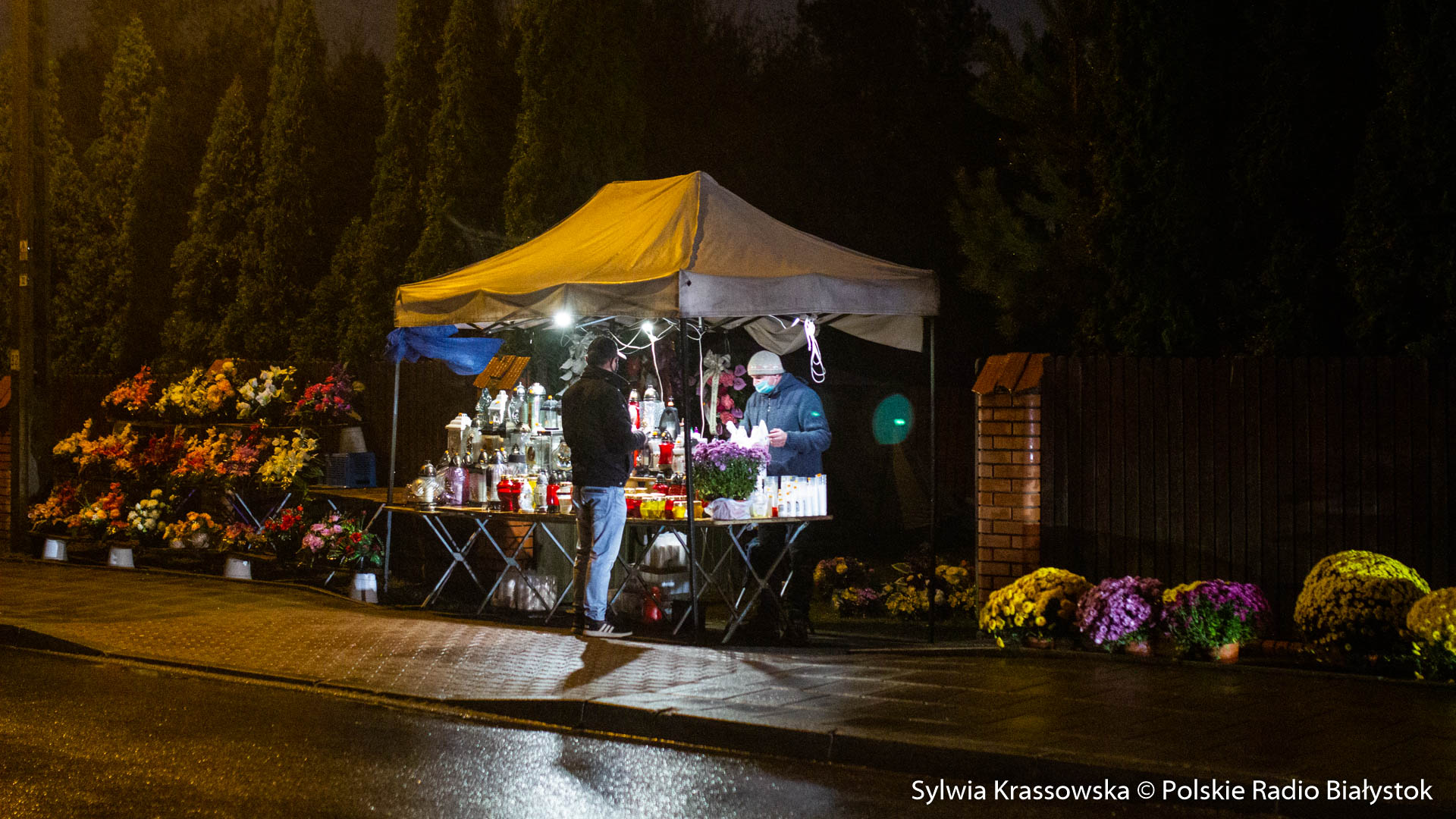 Także nieliczni sprzedawcy chryzantem i zniczy zdecydowali się dziś na handel przed cmentarnymi bramami.