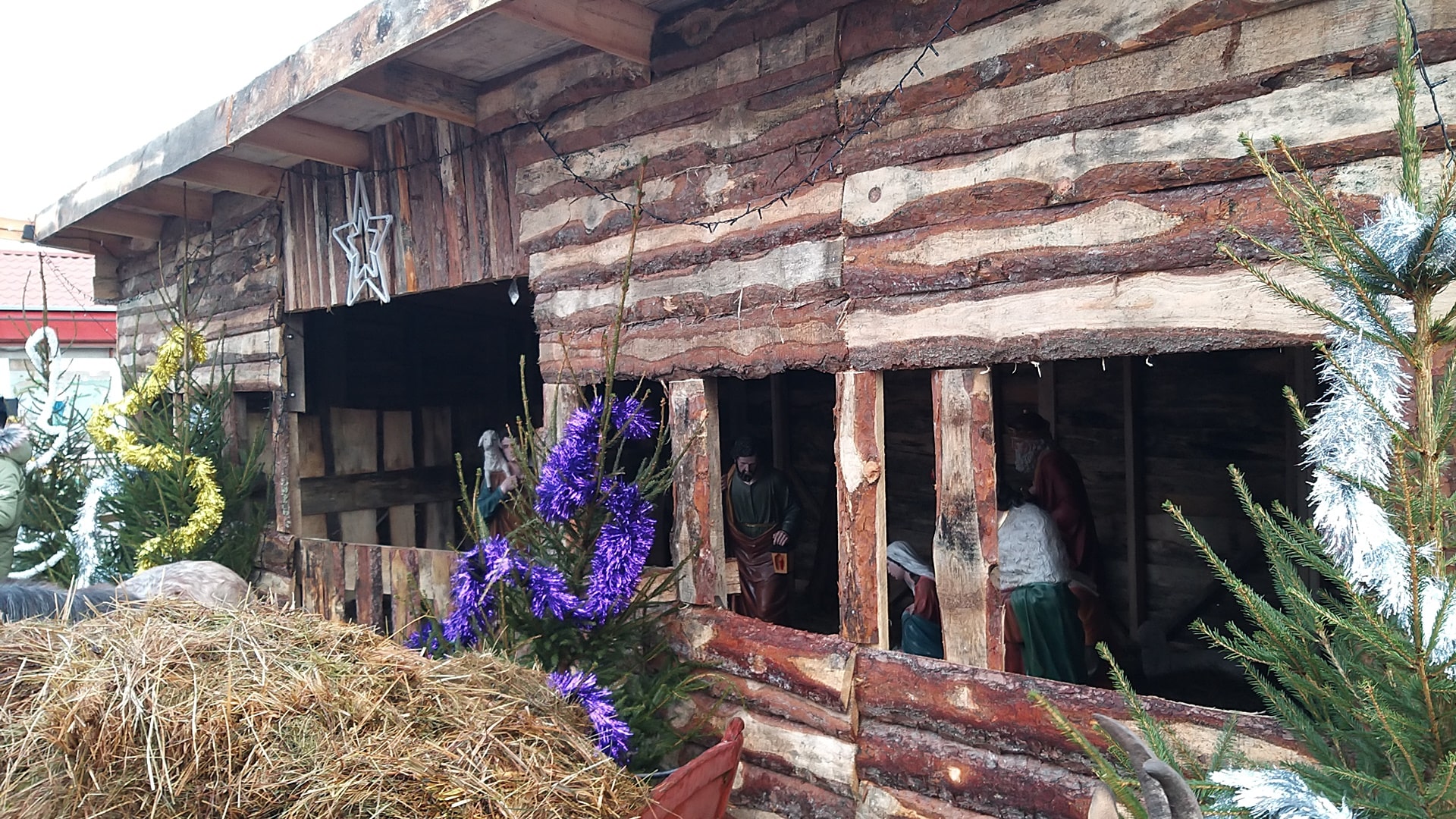 W środku są m.in. żywe zwierzęta i figury Świętej Rodziny. Dużą, drewnianą szopkę bożonarodzeniową ustawiono na rynku w Supraślu.