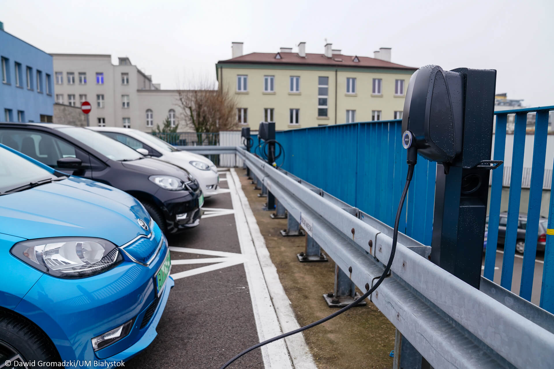 Na urzędowym parkingu przy ul. Słonimskiej zamontowano też ładowarki do pojazdów elektrycznych. Z nowych samochodów szczególnie zadowoleni są pracownicy białostockiego magistratu.