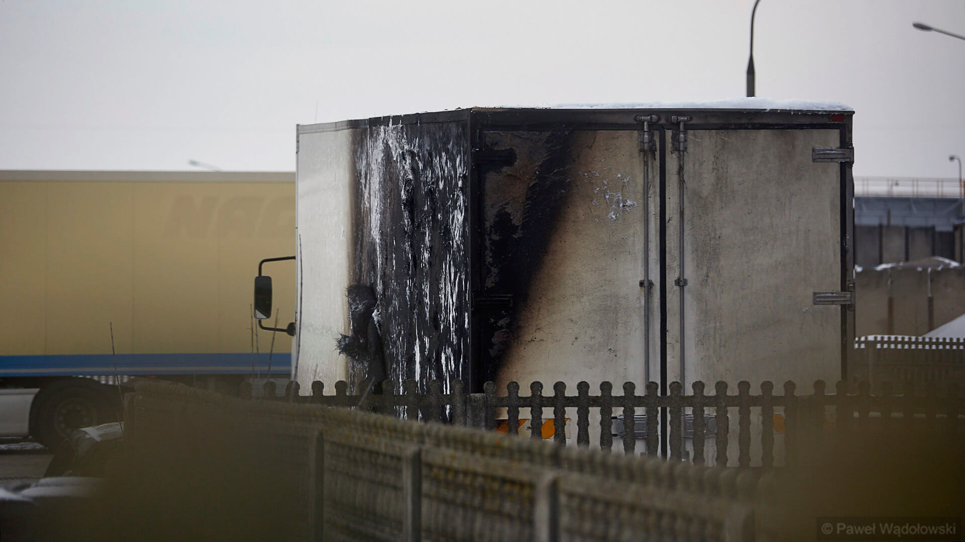 Pożar samochodów dostawczych w Łomży, fot. Paweł Wądołowski