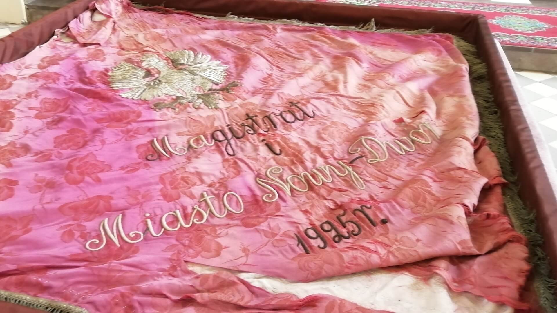 To chorągiew Magistratu i Miasta Nowy Dwór. Sprzątaliśmy dzwonnicę, to było takie gruntowne sprzątanie. W kącie, wśród innych chorągwi procesyjnych, znalazła się ta jedna