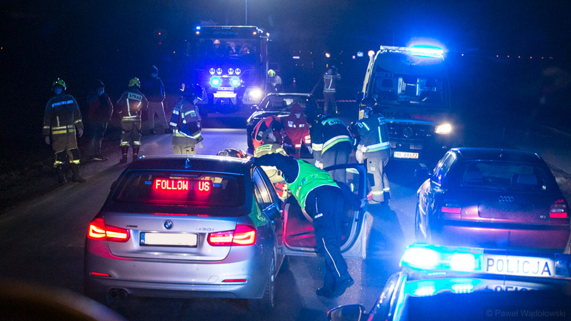 Badanie alkomatem wykazało, że 22-letni kierowca był trzeźwy. Do wypadku doszło na nieoświetlonym odcinku drogi.