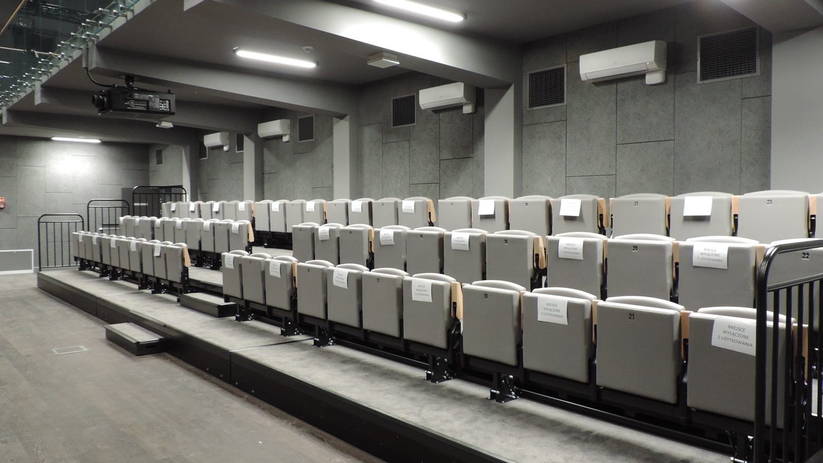 Poziom niżej znalazła się sala wielofunkcyjna wyposażona m.in. w lustra i balustrady przy ścianach oraz system oświetleniowy i nagłośnieniowy. Przystosowana jest również do organizowania wystaw i projekcji na mniejszym ekranie.
