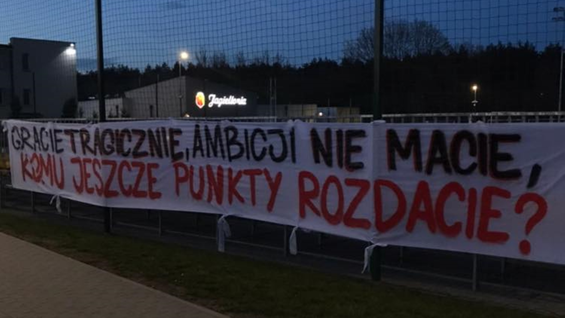 Radio Białystok | Wiadomości | Wiadomości - Kibice Jagiellonii są zawiedzeni postawą zespołu - wywiesili transparent na płocie ośrodka treningowego