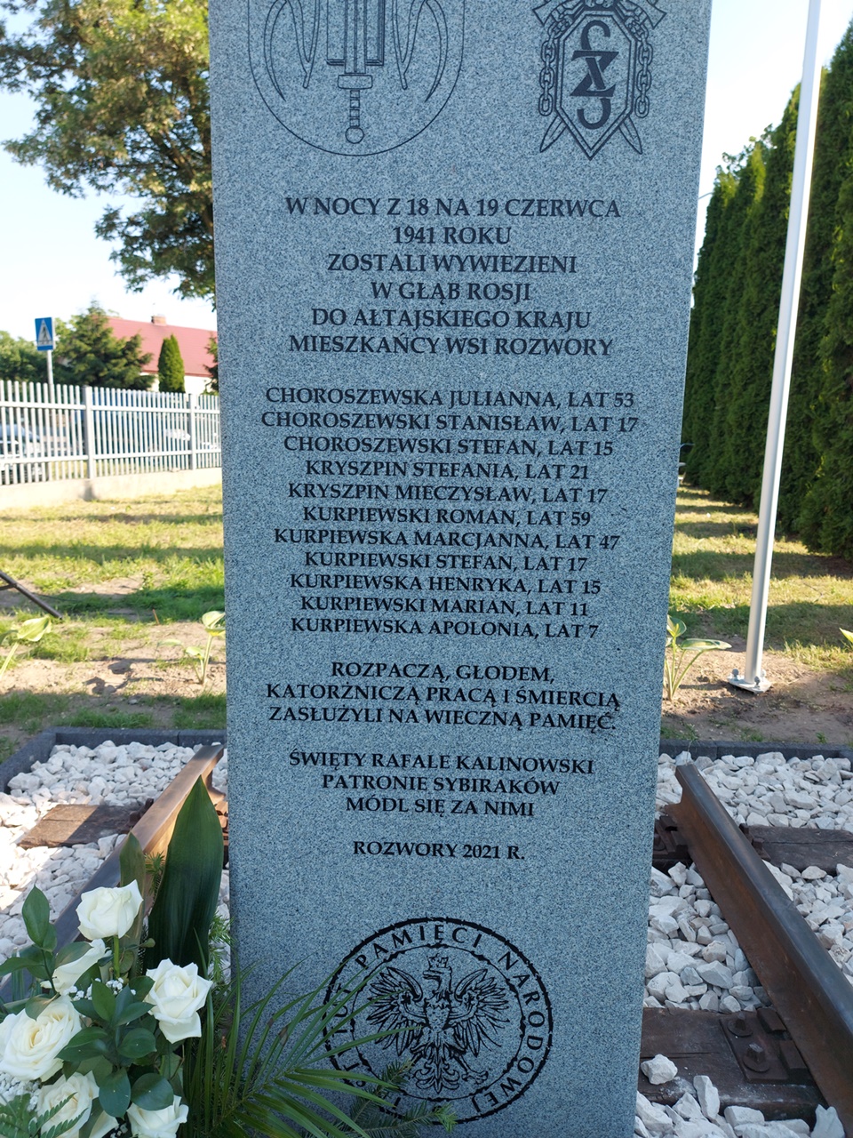 Choroszewscy, Kryszpinowie, Kurpiewscy - to nazwiska Sybiraków, jakie znalazły się na odsłoniętym obelisku w Rozworach - 20 kilometrów za Łomżą.