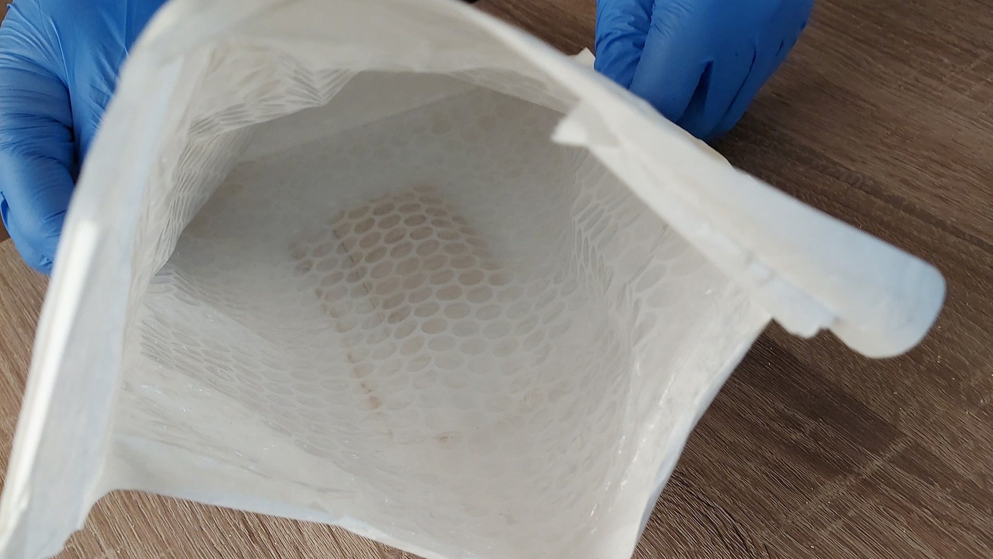 "Jedna z przesyłek wzbudziła podejrzenia. Na skanie wyszło, że są to jakieś płaskie elementy, zdjęcia koperty, natomiast objętościowo paczka wskazywała, że jest tam coś jeszcze. Przy dokładniejszym sprawdzeniu okazało się, że w kopercie bąbelkowej, w którą zapakowana była paczka znajduje się mała kontrabanda - proszek koloru brązowego. Jak się później okazało był to mefedron."