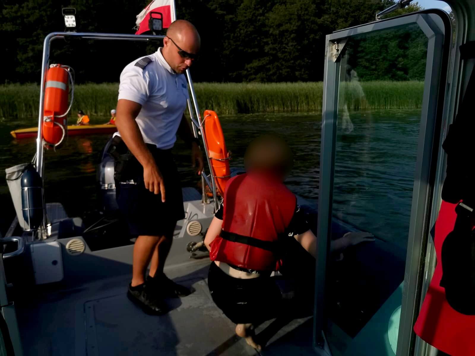 Funkcjonariusze wciągnęli mężczyznę i jego 11-letnią córkę na swoją łódź i bezpiecznie przetransportowali do brzegu. Mundurowi pozbierali również pływające rzeczy turystów i odholowali ich kajak.