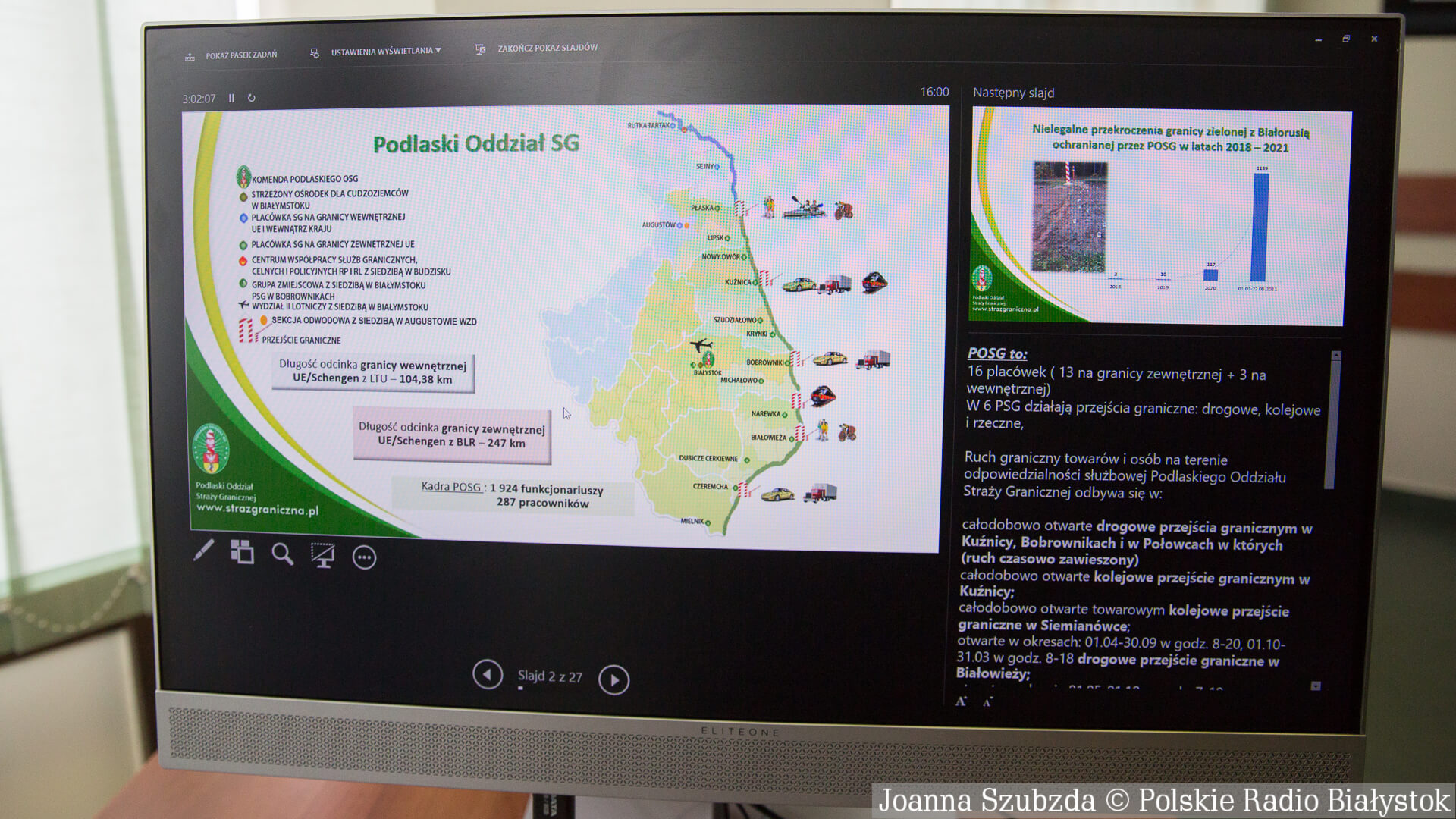 SG przyznaje także, że obecnie największa "presja" imigrantów na polsko-białoruskiej granicy jest na ok. 180-kilometrowym lądowym odcinku, który jest częścią odcinka granicy chronionego przez Podlaski Oddział Straży Granicznej, a np. na terenie chronionym przez oddział Nadbużański SG jest "stabilnie i spokojnie". "Nie odnotowujemy tam żadnych presji migracyjnych" - powiedziała Michalska. Dodała, że z pewnością mają na to wpływ warunki geograficzne, np. rejon rzeki Bug na granicy.
