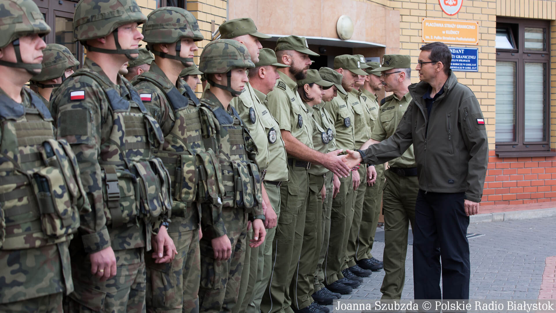 Premier Mateusz Morawiecki spotkał się w Kuźnicy przedstawicielami Straży Granicznej, Wojska Polskiego i Policji. Po spotkaniu odbyła się konferencja prasowa, podczas której szef rządu podziękował wszystkim funkcjonariuszom Straży Granicznej i żołnierzom, którzy patrolują tę granicę.