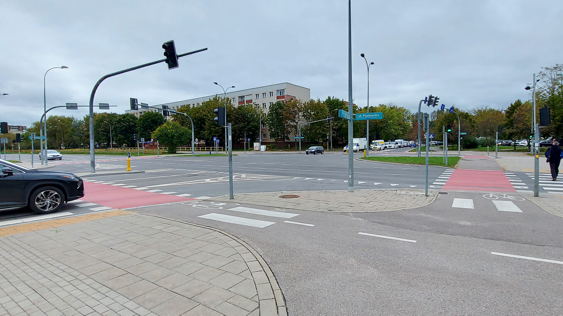 Funkcjonariuszy można było spotkać m.in. na ul. Piastowskiej, gdzie z powietrza kontrolowali przejście przy skrzyżowaniu z ulicą Nowowarszawską.