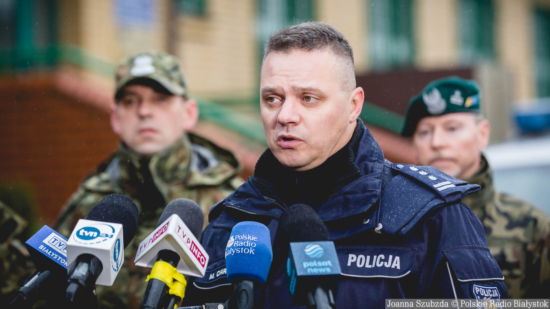 O sytuacji na granicy mówili przed placówką straży granicznej w Szudziałowie funkcjonariusze policji, straży granicznej i żołnierze.