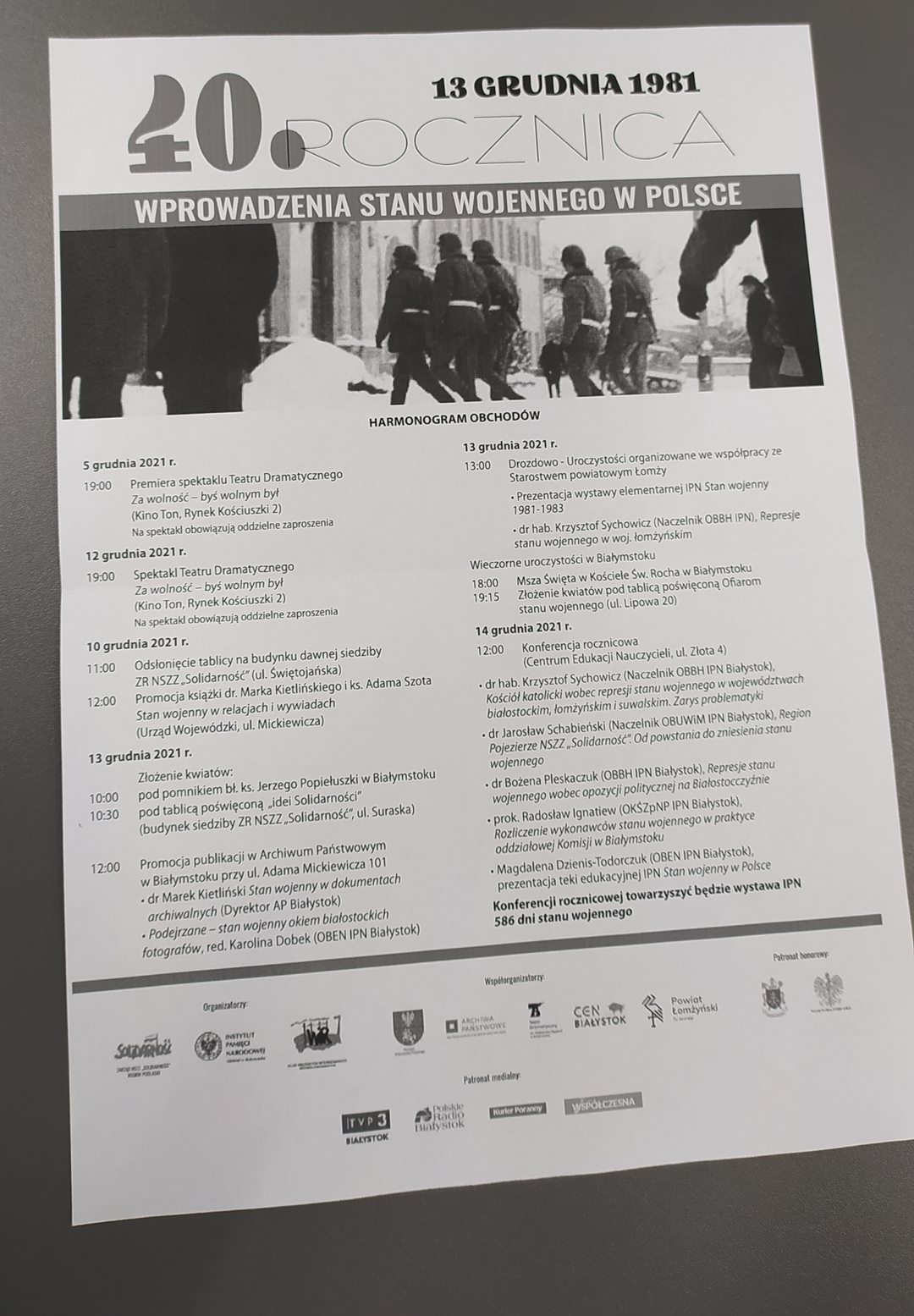 14 grudnia w Centrum Edukacji Nauczycieli w Białymstoku zaplanowano także konferencję IPN, której będzie towarzyszyć wystawa "586 dni stanu wojennego".