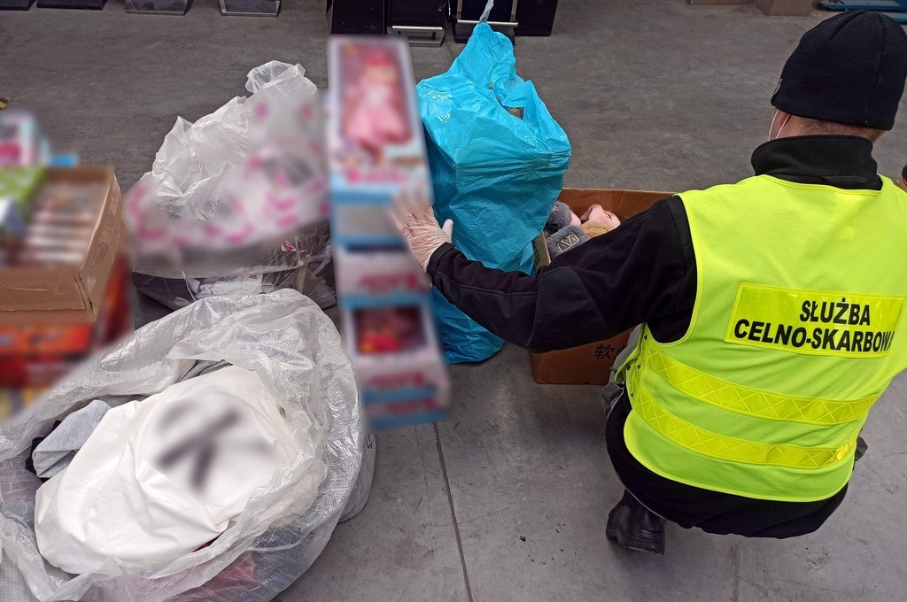 Blisko 1,3 tys. sztuk podrabianych zabawek, odzieży i kosmetyków zabezpieczyli funkcjonariusze podlaskiej KAS podczas kontroli w sklepie w Kolnie.