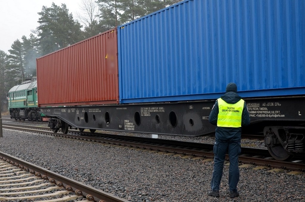 Funkcjonariusze podlaskiej KAS udaremnili przemyt papierosów w kontenerze pociągu towarowego