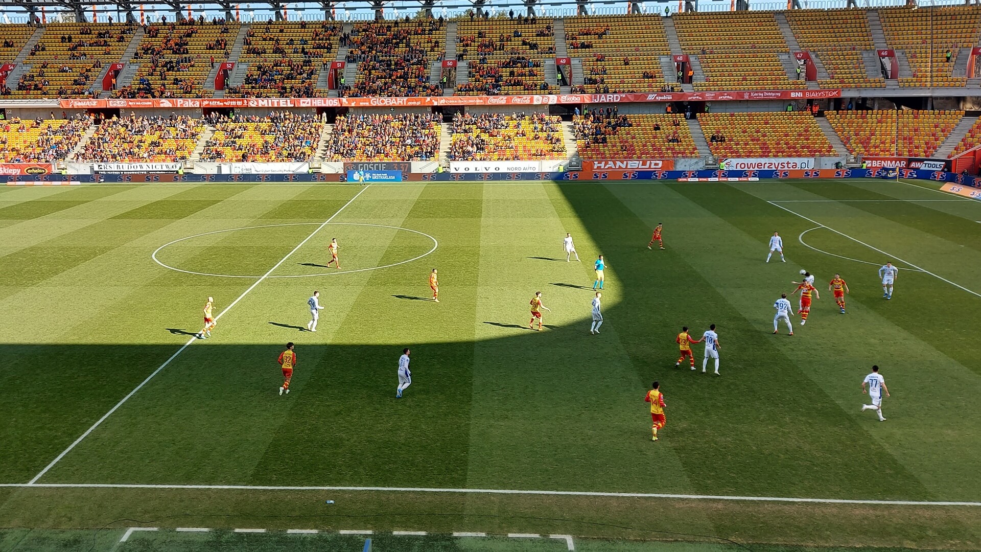 Co prawda w 9. min Karol Suski znalazł się w dobrej sytuacji w polu karnym (uderzył wzdłuż bramki), to jednak od straty gola Jagiellonia wyraźnie straciła inicjatywę.