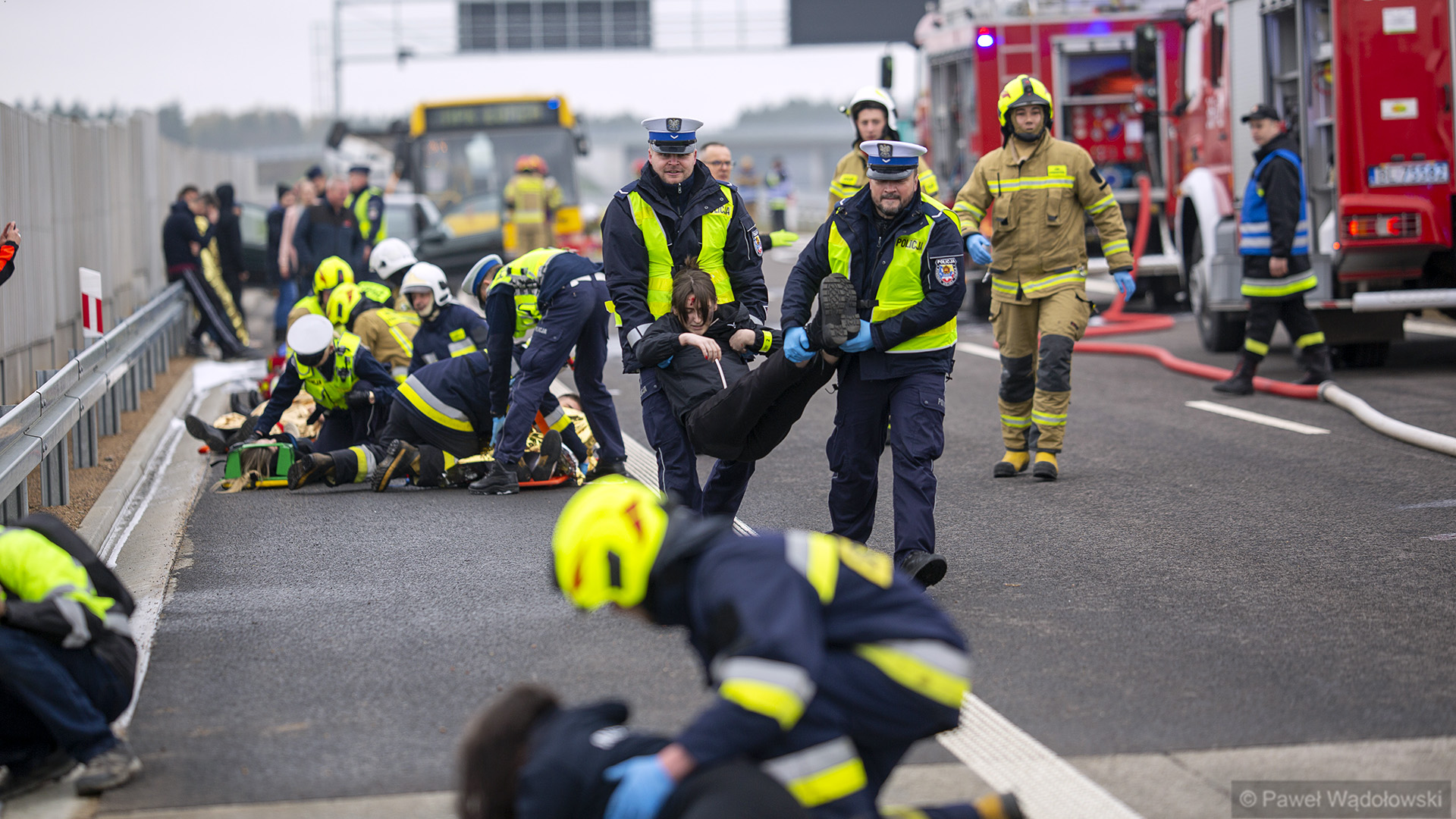 Na nieotwartym dla ruchu odcinku drogi wszystkie służby ratownicze wzięły udział w pozoracji, która zakładała, że doszło do katastrofy w ruchu lądowym, w której rannych zostało kilkadziesiąt osób.