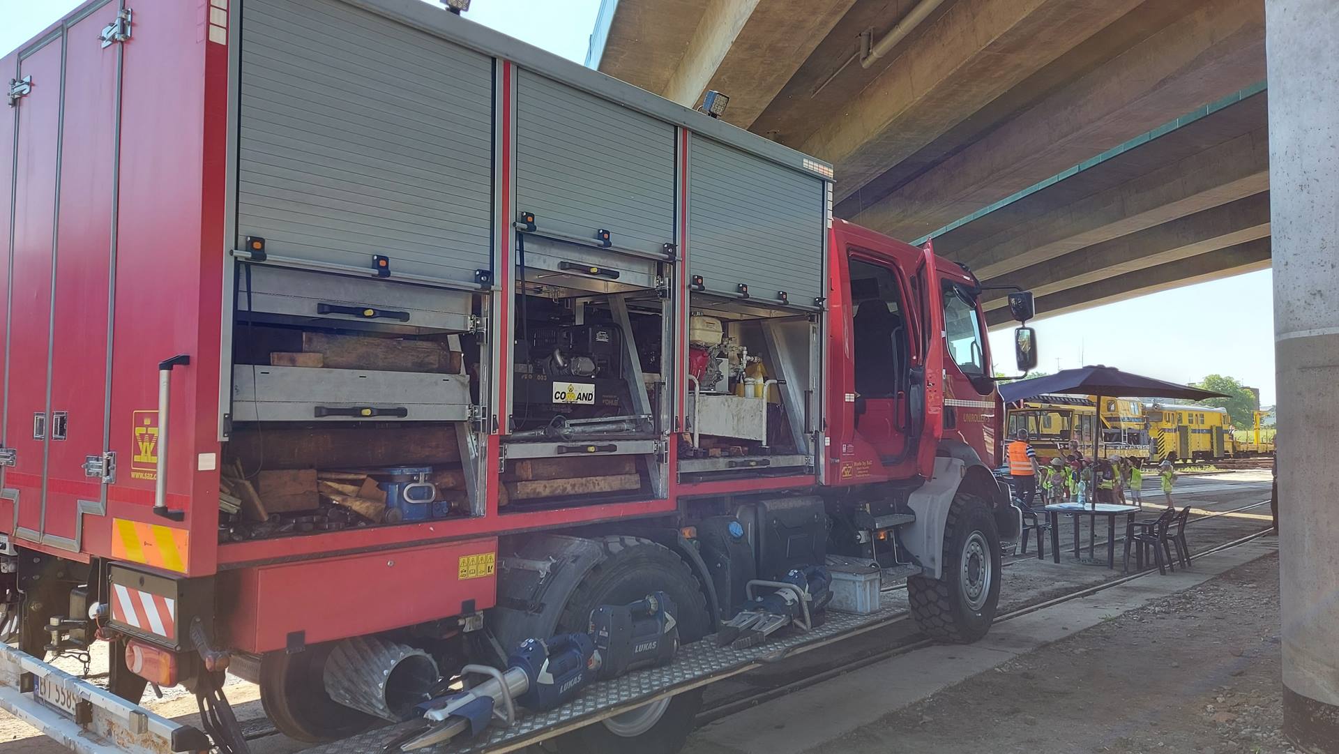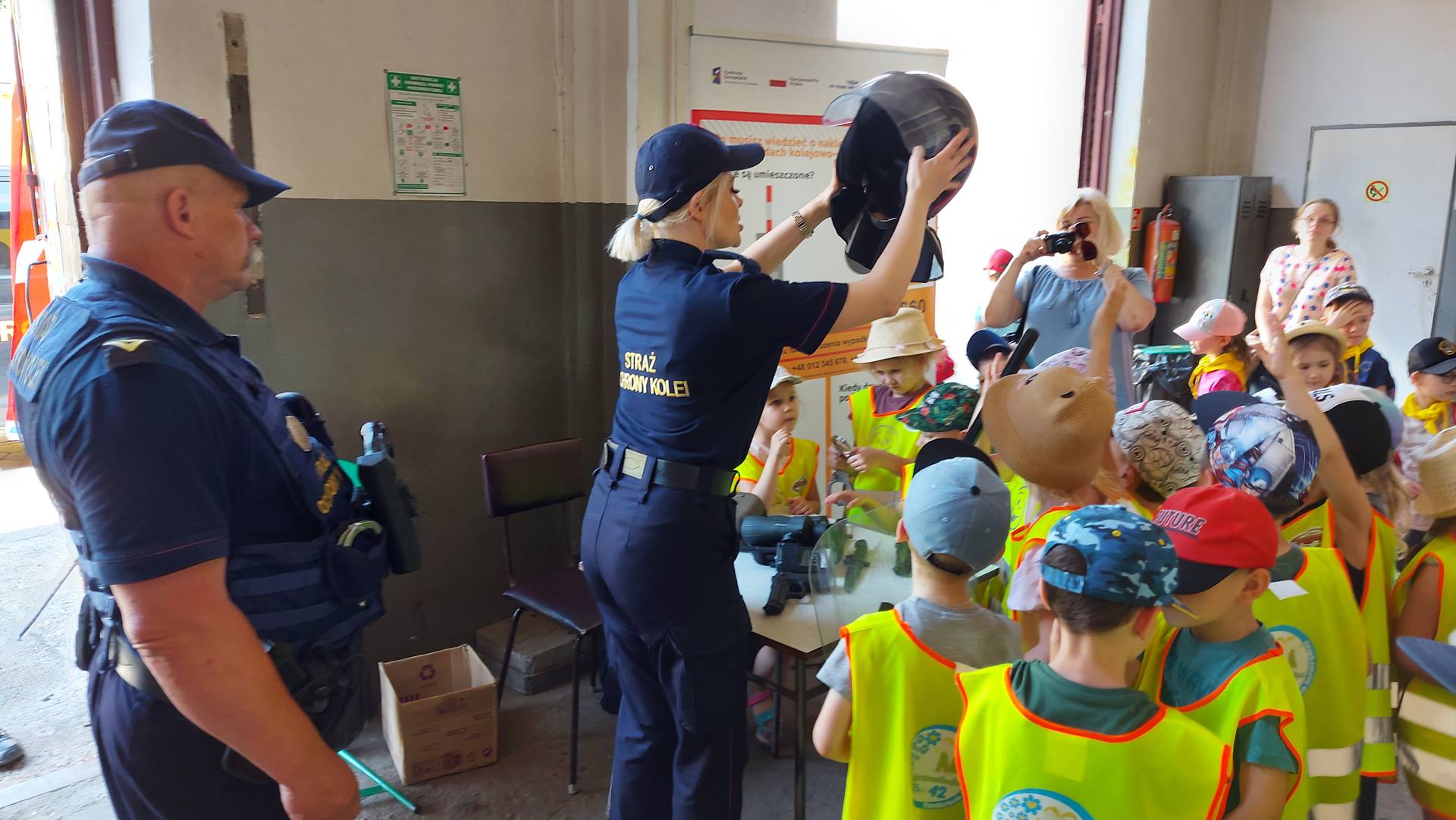 Funkcjonariusze Straży Ochrony Kolei, Straży Pożarnej i Policji opowiadali o swojej pracy i prezentowali pojazdy gaśnicze, inspekcyjne i sprzęt będący na ich wyposażeniu.