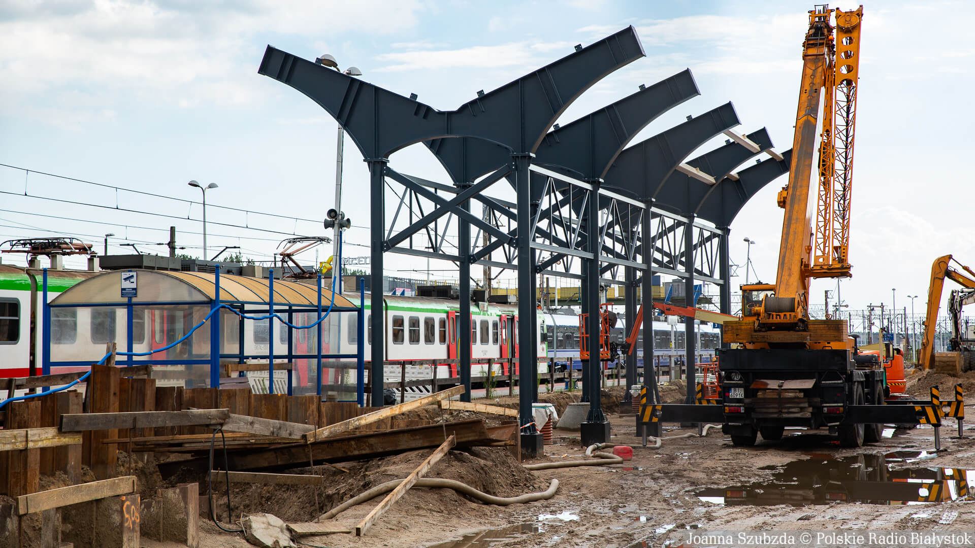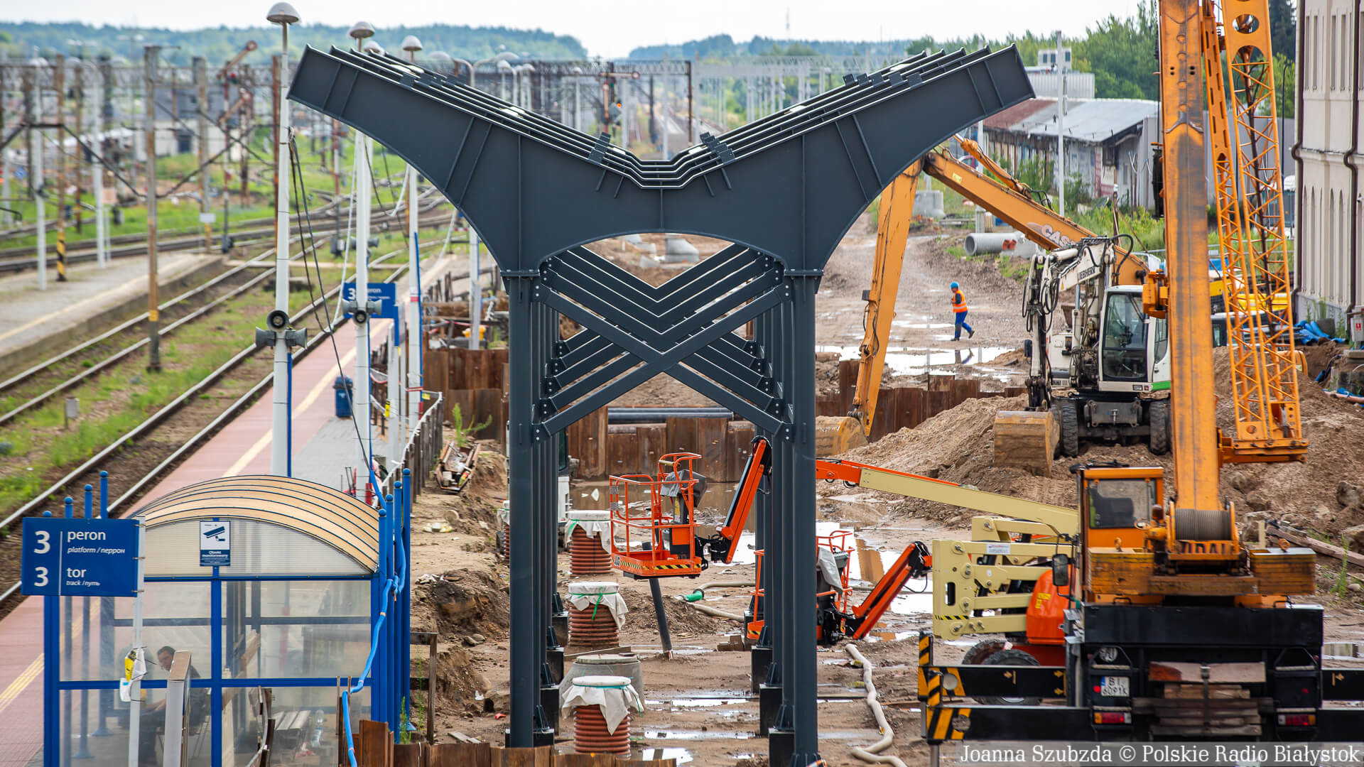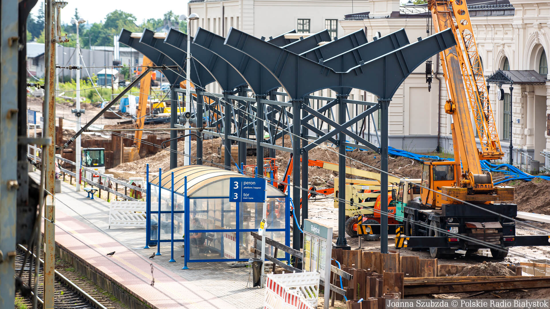 Radio Białystok | Wiadomości | Wiadomości - Rozpoczął się montaż zadaszenia nad peronami białostockiego dworca PKP [zdjęcia]
