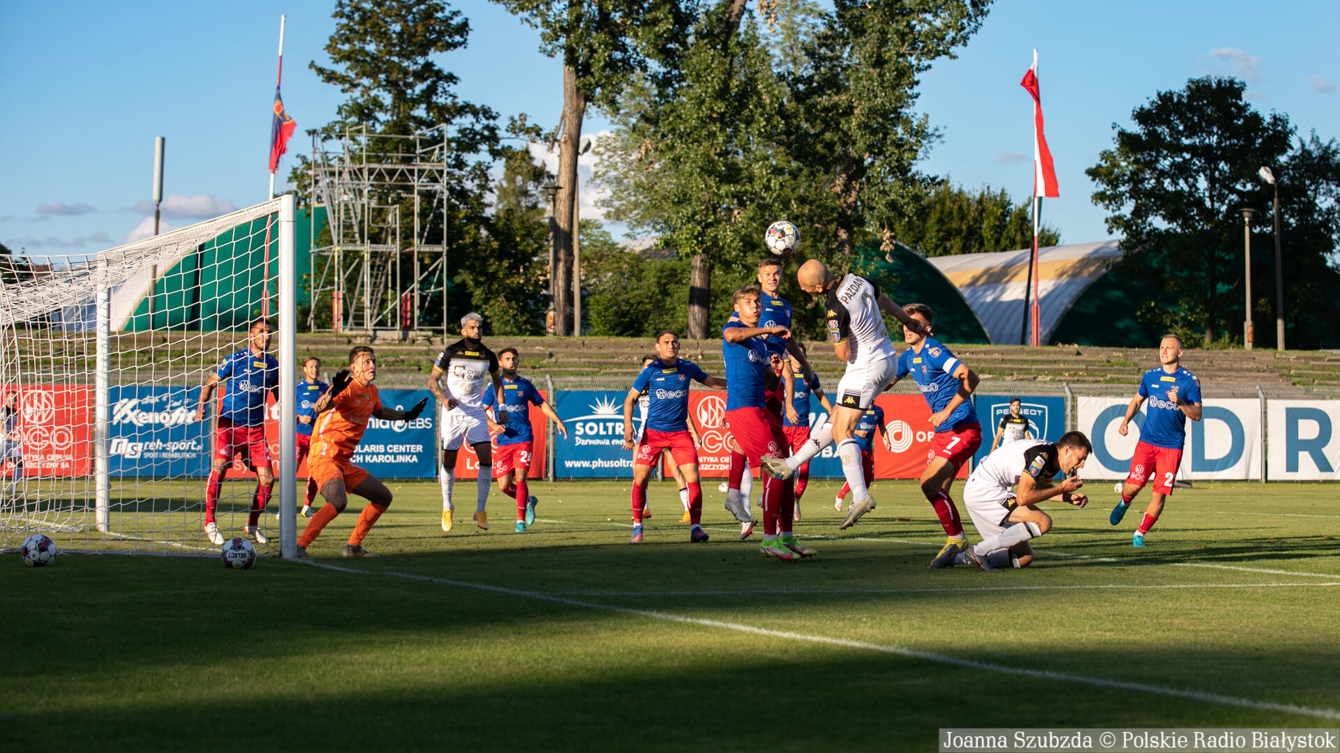 Kilka minut później gospodarze znowu mieli dobrą okazję do zdobycia bramki. Pomylił się Tiru, który chciał zagrać piłkę głową do własnego bramkarza, futbolówkę przejął Guzdek i mało brakowało, a zdobyłby bramkę.