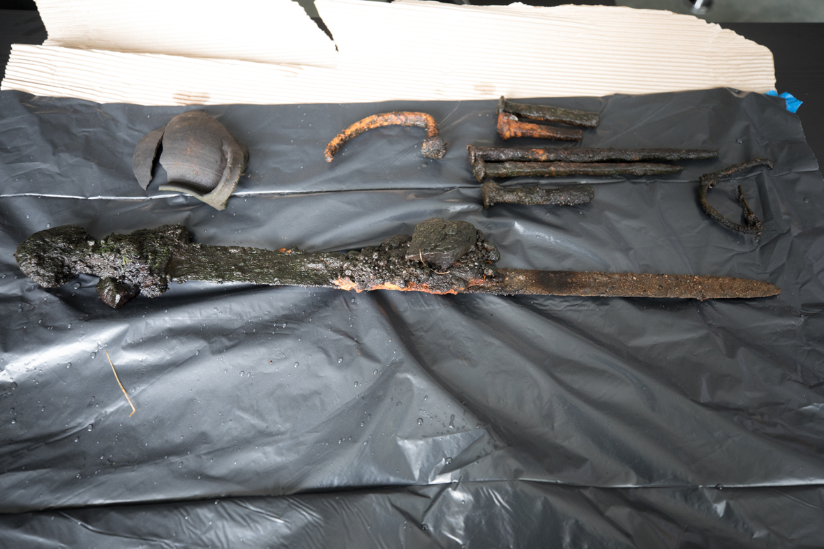 O znalezisku został powiadomiony Wojewódzki Urząd Ochrony Zabytków w Białymstoku. Jak wynika z komunikatu urzędu, przedmiot jest nieuszkodzony; oprócz miecza odnalezione zostały fragmenty ceramiki, gwoździe oraz inne drobne elementy metalowe.