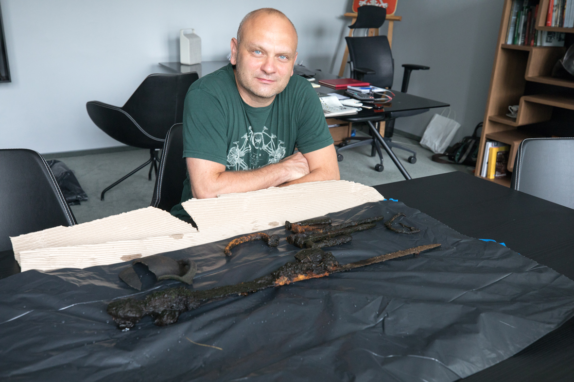 Natknąłem się na ten artefakt podczas urlopu. Od razu wiedziałem co to jest, bo ten kształt nie pozostawiał złudzeń, od razu było widać, że jest to miecz z IX-X wieku. Był w takim miejscu, że należało go wydobyć, bo jego dalsze przebywanie w tym miejscu groziło zniszczeniem