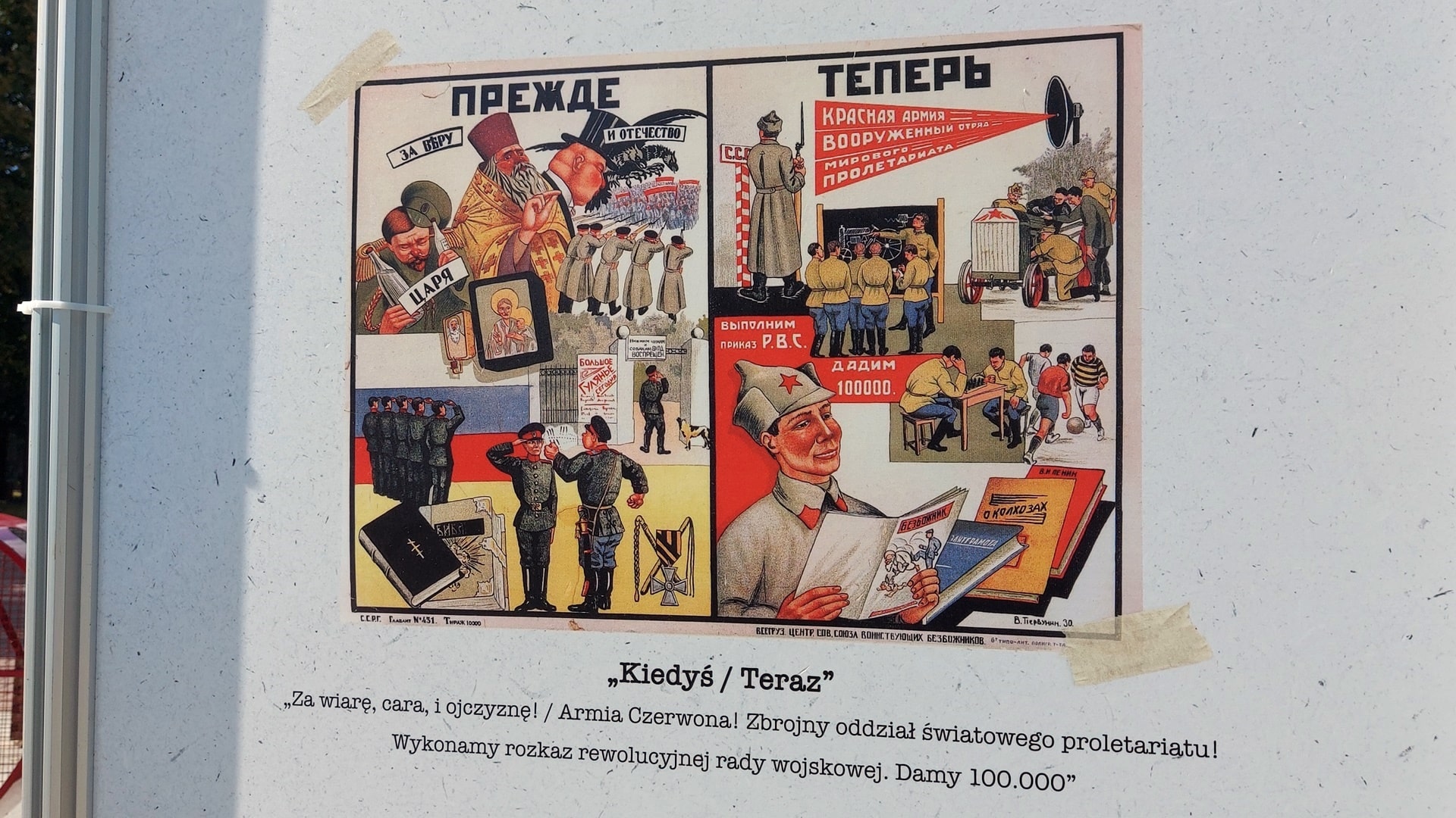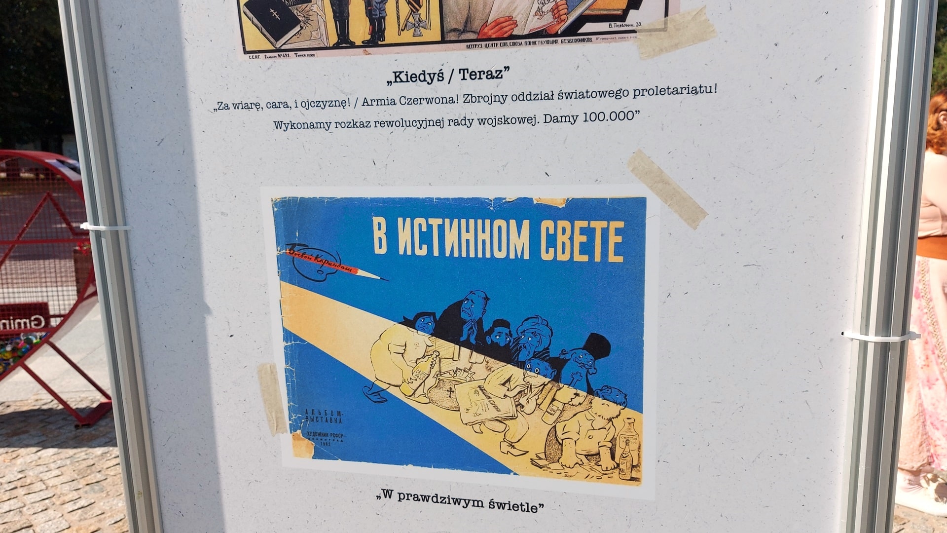 Na wystawie są m.in. antyreligijne propagandowe plakaty i zdjęcia niszczonych cerkwi. W piątek (16.09) na Rynku w Supraślu otwarto wystawę "Zbrodnie komunistyczne wobec Cerkwi Prawosławnej".