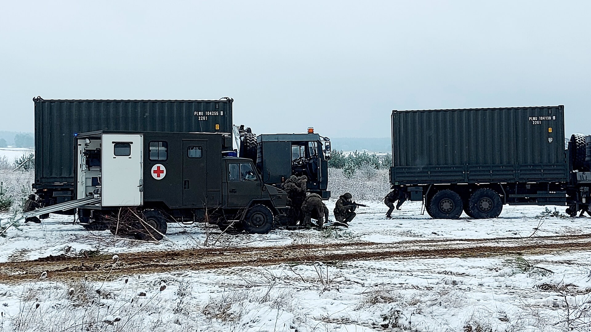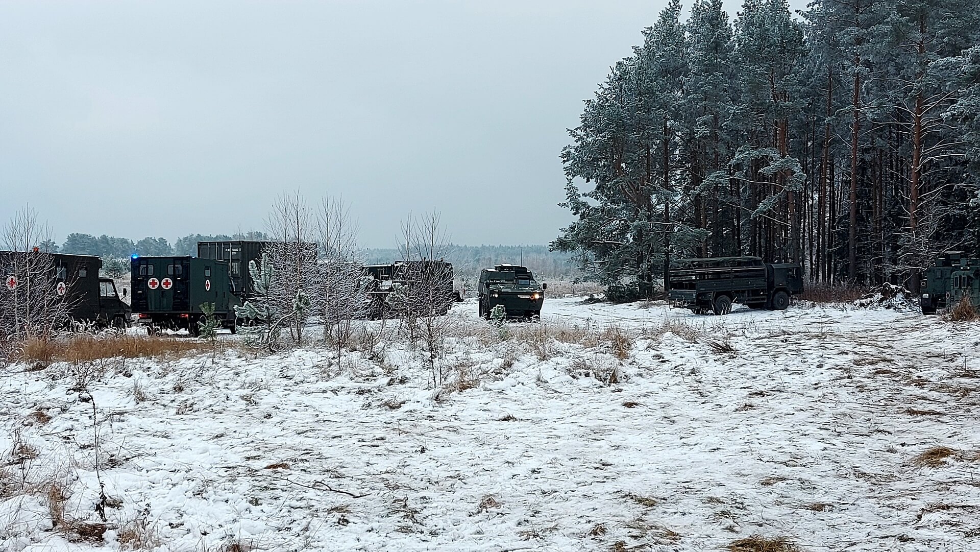 Napad na konwój i pomoc poszkodowanym żołnierzom - tak wyglądał scenariusz ćwiczeń wojskowych, które odbyły (25.11) się w okolicach miejscowości Płociczno na Suwalszczyźnie.