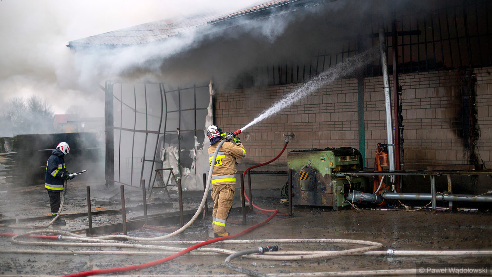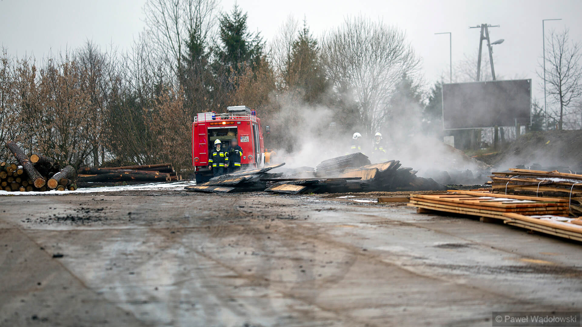 W akcji gaśniczej brało udział ponad 20 jednostek z terenu powiatu kolneńskiego i jedna - cysterna - z Zambrowa. Było to istotne wsparcie, bo strażacy musieli jeździć po wodę aż do Kolna. Na razie nie oszacowano, jakiej wysokości straty spowodował ogień. Wiadomo, że zniszczony jest samochód ciężarowy, wózek widłowy, dach na 1/3 budynku, a także 100 m3 suchego drewna. Przyczyna pożaru nie jest jeszcze znana.