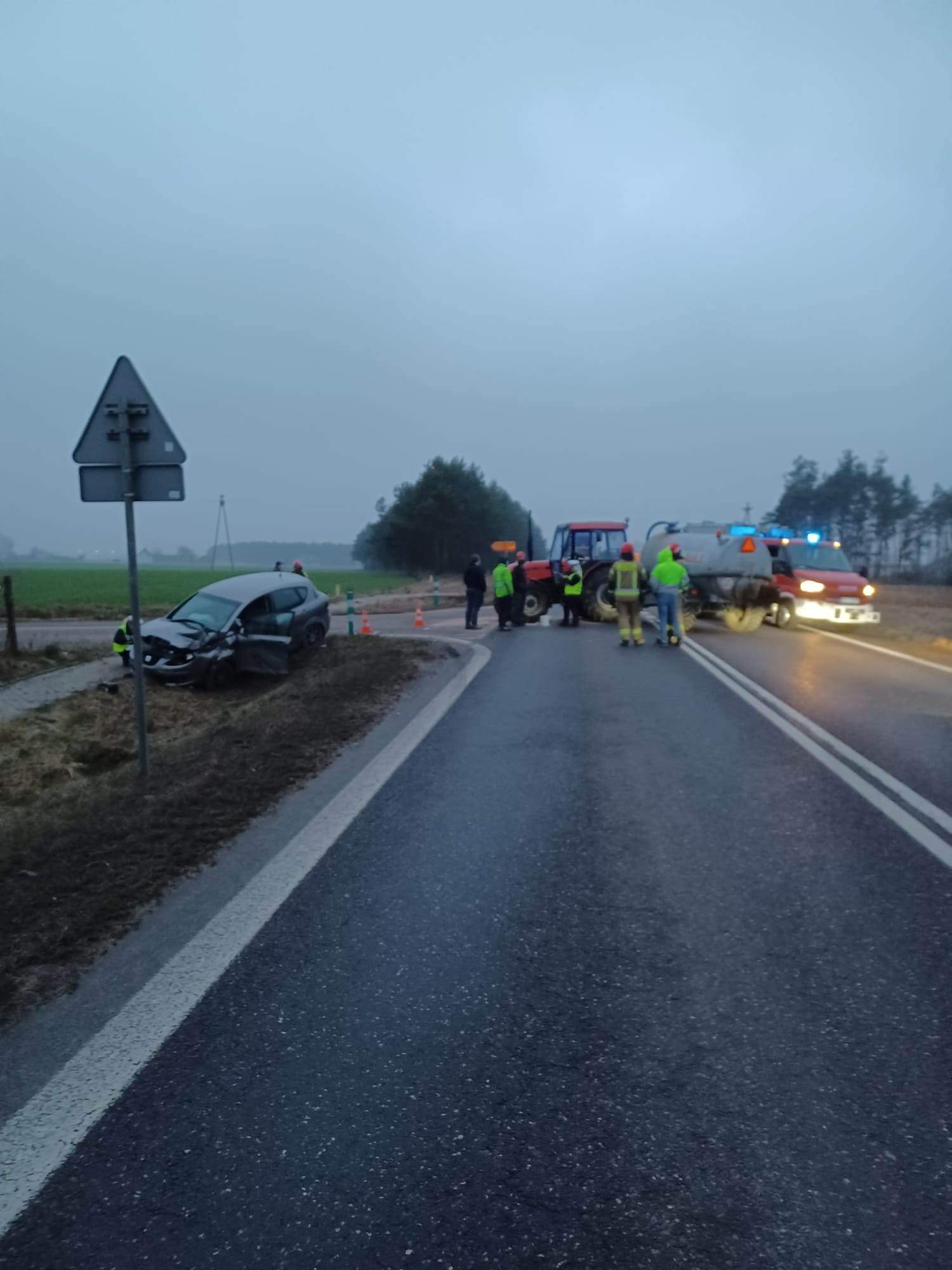 Jak wynika ze wstępnych ustaleń policji, na wysokości miejscowości Sikora doszło do zderzenia samochodu osobowego i ciągnika rolniczego.