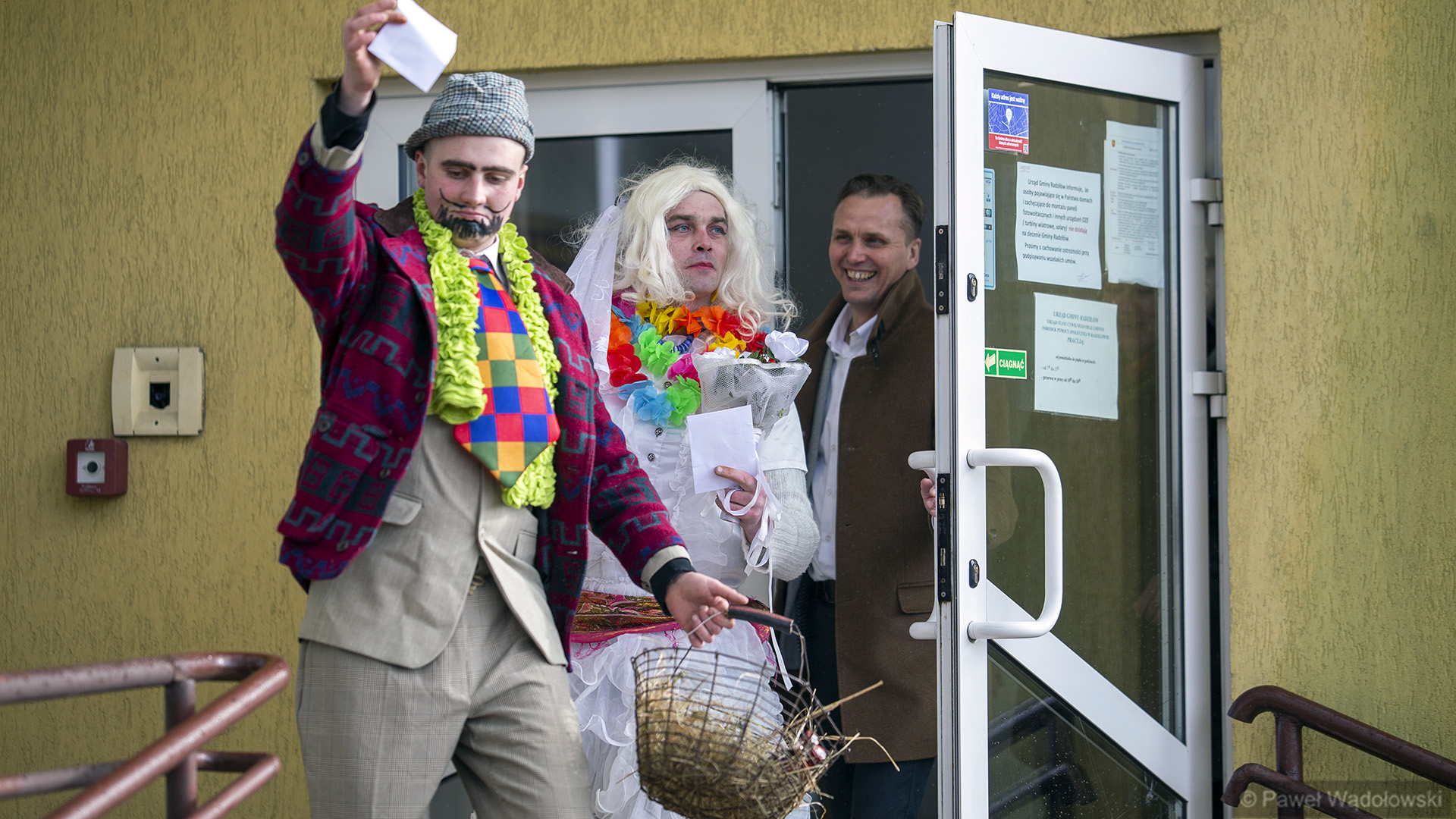 To tradycja już z lat około 60. A głównym elementem są dwie postacie umieszczone na kole drewnianym, które są ciągnięte przez konia. To jest korowód i za tymi dwoma postaciami szli przebrani mieszkańcy, którzy odwiedzali urzędy, odwiedzali sąsiedzi. A wszystko kończyła wspólna biesiada w gospodzie