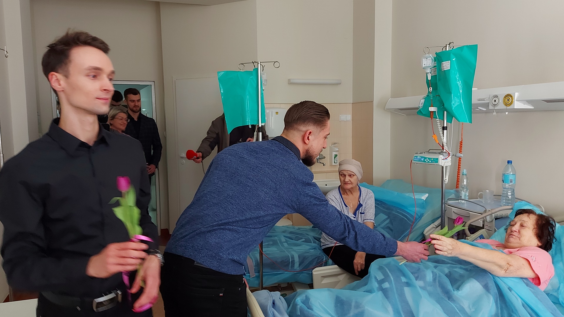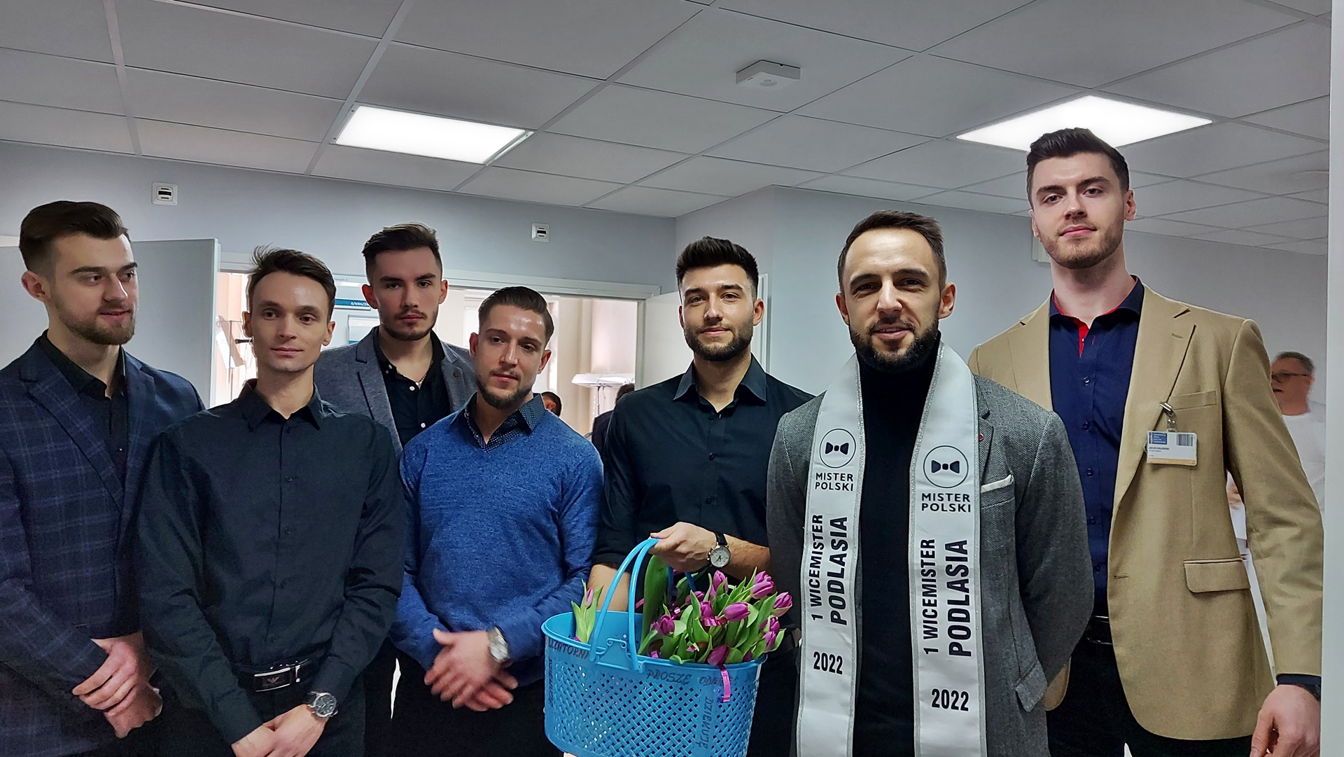 Z okazji Dnia Kobiet - aby udzielić wsparcia pacjentkom - finaliści konkursu Mister Podlasia odwiedzili panie, leczące się w Uniwersyteckim Centrum Onkologii USK w Białymstoku.