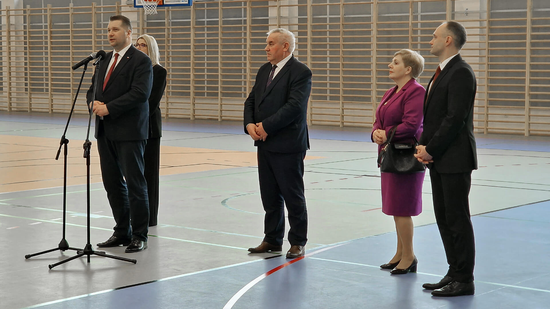 - Będziemy inwestowali w budowę małych hal sportowych przy szkołach - mówił w Stawiskach Czarnek. Odwiedził szkołę podstawową, przy której od zeszłego roku funkcjonuje pełnowymiarowa hala.