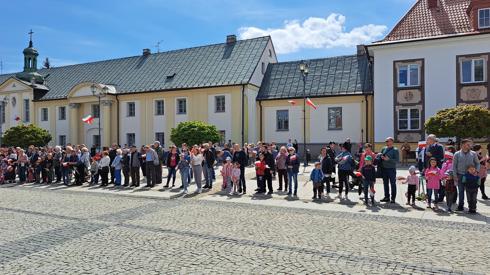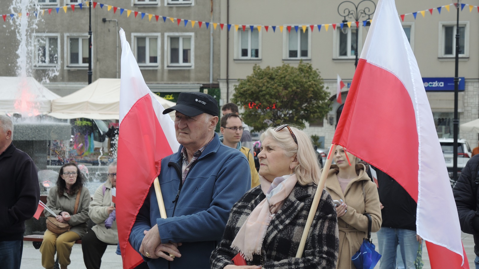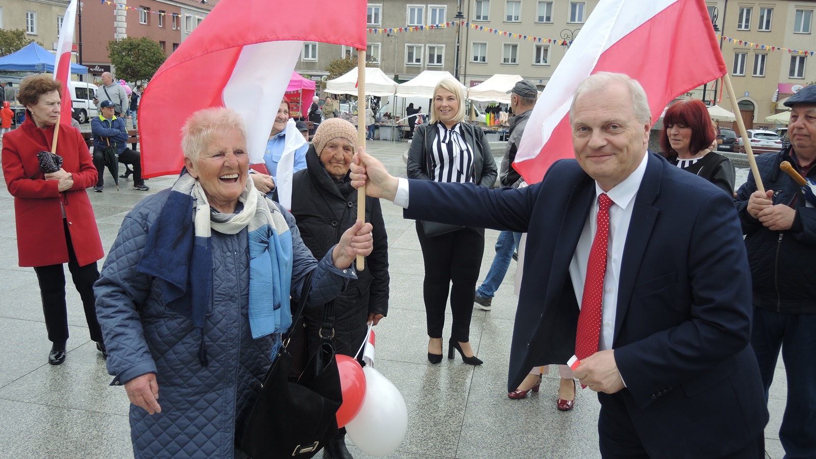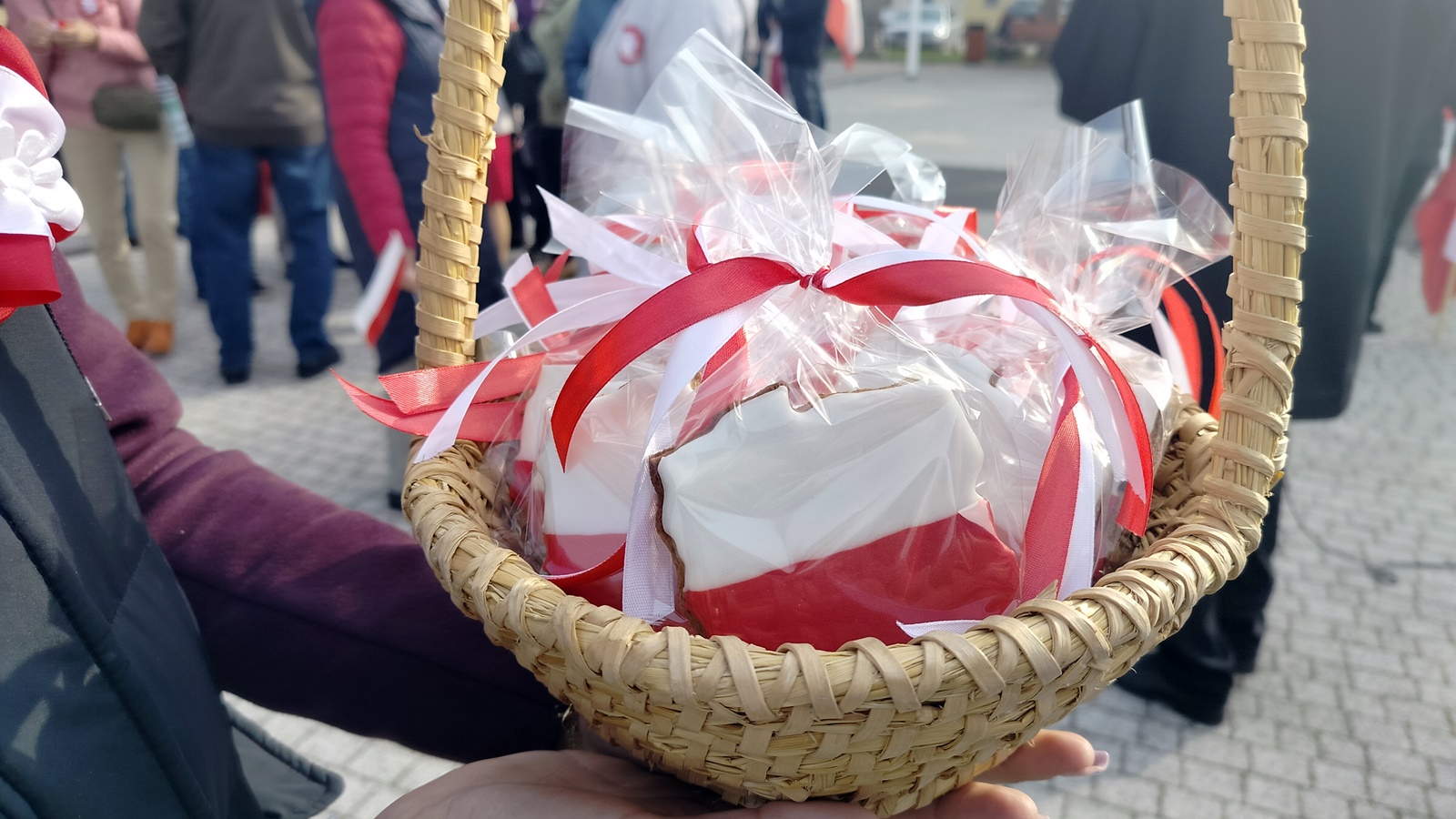 Tego dnia miasto zostało przyozdobione w biało-czerwone, świąteczne dekoracje.