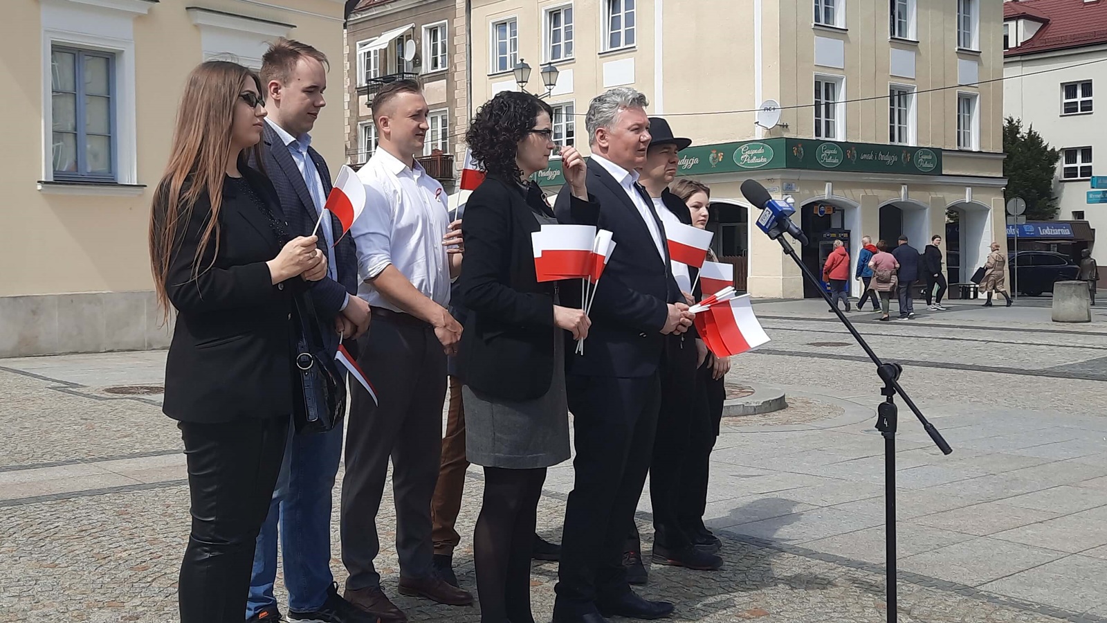 Działacze Konfederacji zachęcali w centrum Białegostoku do świętowania Dnia Flagi Rzeczpospolitej. Rozdawali biało-czerwone chorągiewki i wstążki. Gadżety w narodowych barwach rozdawał m.in. podlaski działacz partii Krzysztof Bartosik.