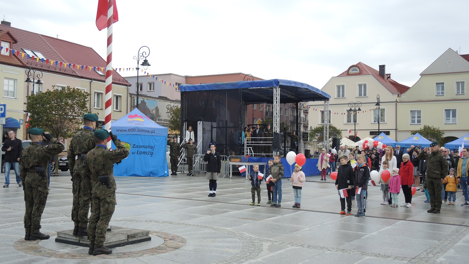 Od uroczystego podniesienia flagi przez żołnierzy 18 Łomżyńskiego Pułku Logistycznego rozpoczął się przed ratuszem „Biało- czerwony piknik rodzinny”.