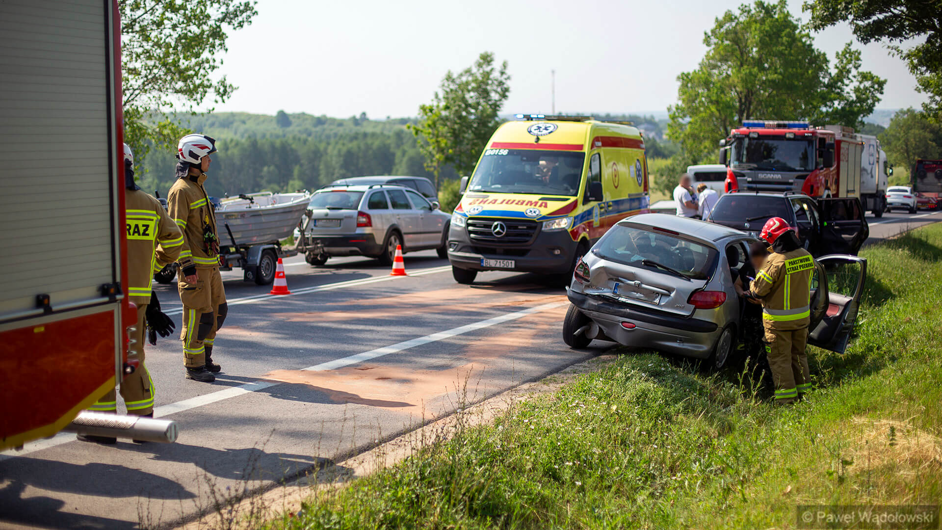 Dwuletnie dziecko trafiło do szpitala po wypadku, do którego doszło na drodze krajowej nr 61 przy wjeździe do Piątnicy. Cały czas pracują tam służby ratunkowe i tworzą się bardzo duże korki.