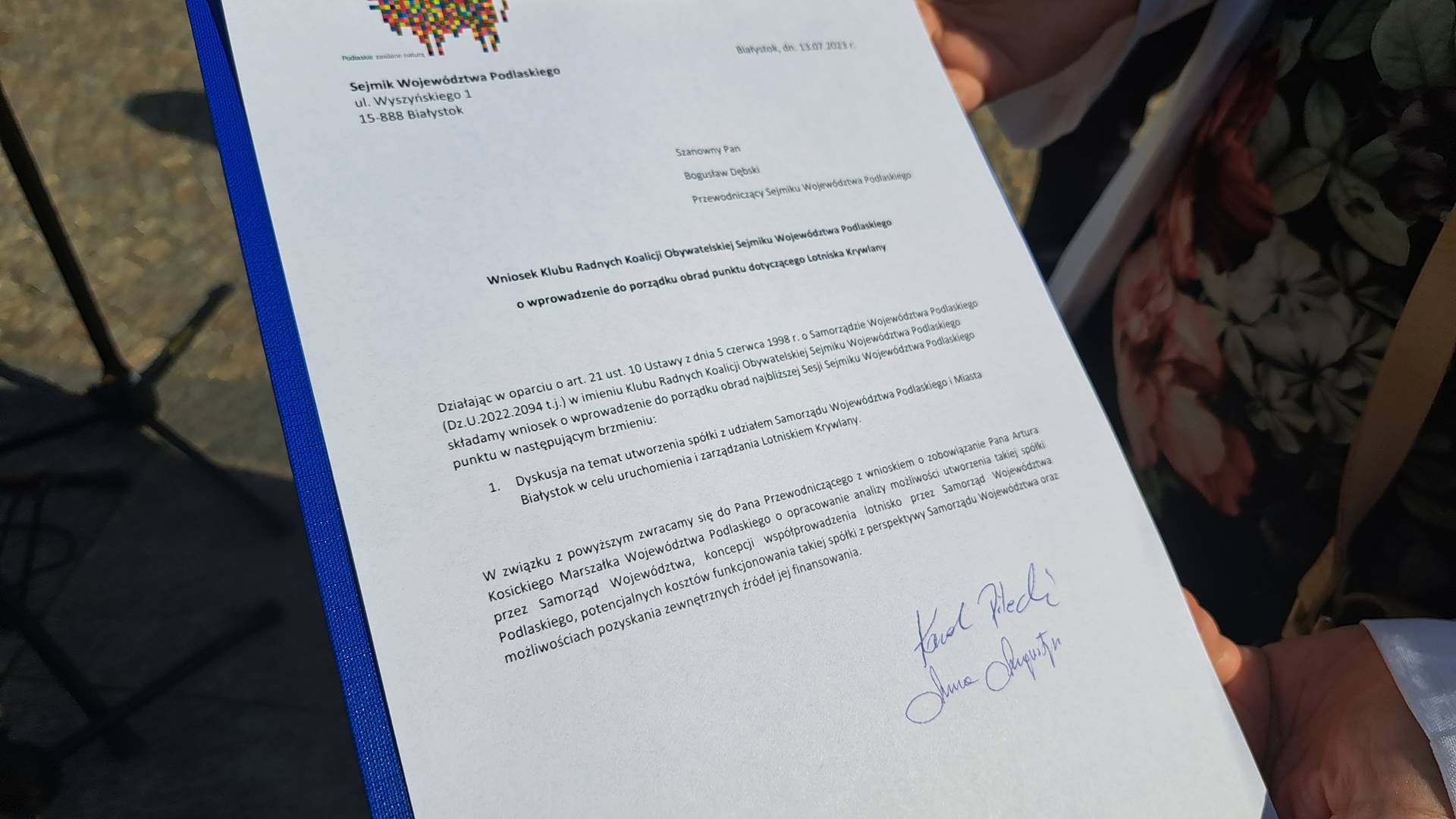 Radio Białystok | Wiadomości | Wiadomości - Radni KO złożyli wniosek do przewodniczącego podlaskiego sejmiku - chcą na sesji dyskutować o lotnisku na Krywlanach