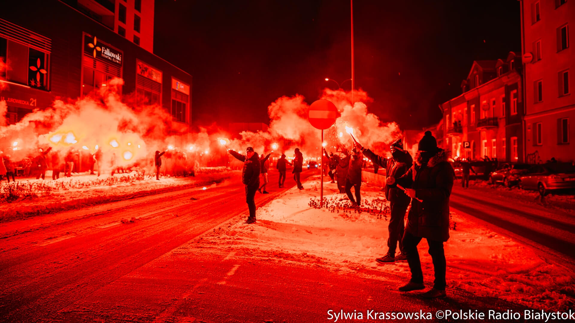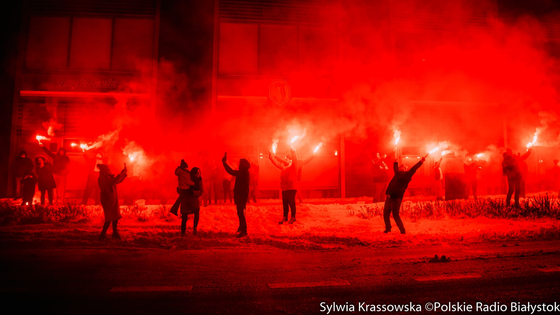 To już kilkuletnia akcja kibiców Jagiellonii Białystok. W sobotę (13.01) wieczorem fani żółto-czerwonych odpalili setki rac w centrum Białegostoku. To piąte tzw. "Jagiellońskie Racowisko".