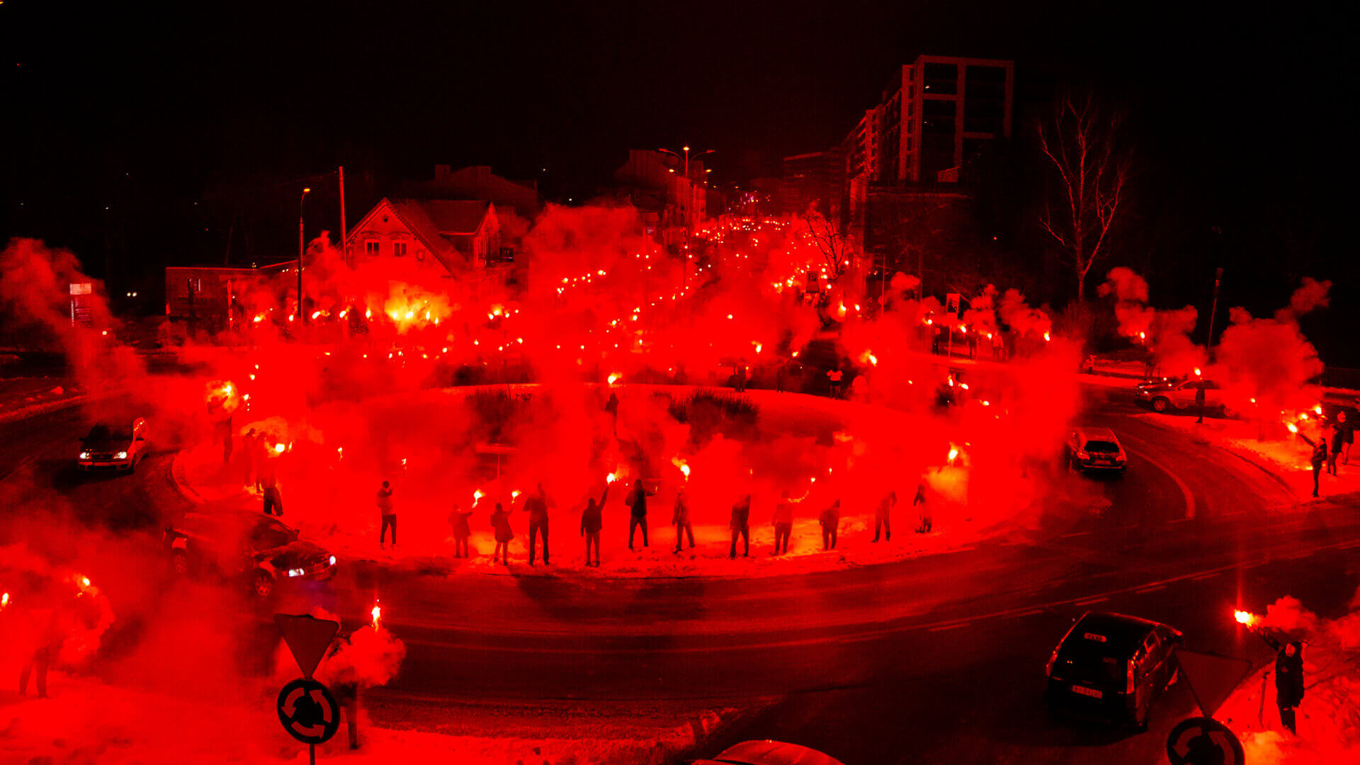 Fani odpalili race również na ulicach w pobliżu ul. Jurowieckiej - m.in. wokół ronda przy ul. Poleskiej.