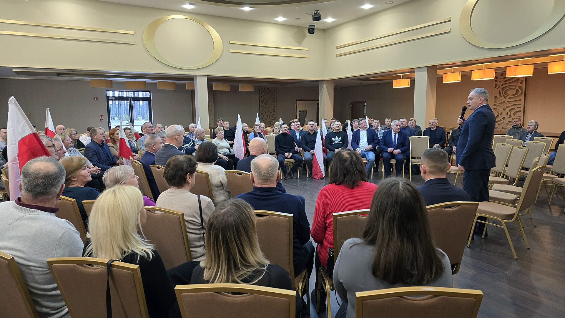 Spotykamy się w różnych częściach kraju. Spotykają się parlamentarzyści Prawa i Sprawiedliwości i Suwerennej Polski. Widzę, że nastroje są dobre przed wyborami, na sali jest wielu samorządowców. Do boju, można powiedzieć. Będziemy rozmawiali na temat aktualnej sytuacji w kraju, która nie napawa optymizmem. Demokracja jest niszczona, nie ma co do tego żadnych wątpliwości. Ostatnie tygodnie pokazują, że te wybory zbliżające się: samorządowe, a potem do europarlamentu, będą bardzo ważnymi - mówi Michał Wójcik.