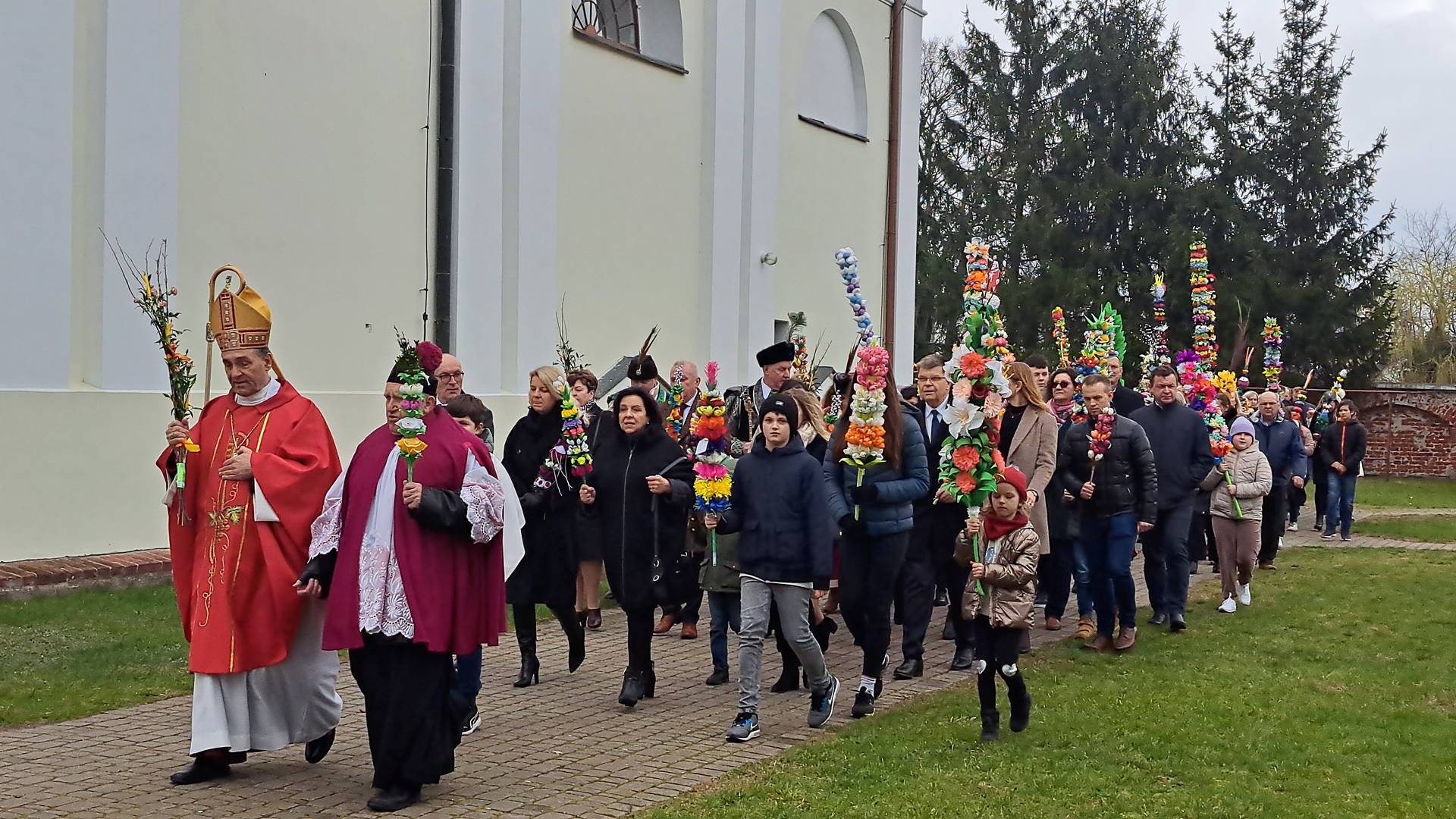 Wszystkie palmy - nie tylko konkursowe - były częścią procesji Niedzieli Palmowej pod przewodnictwem biskupa drohiczyńskiego Piotra Sawczuka.