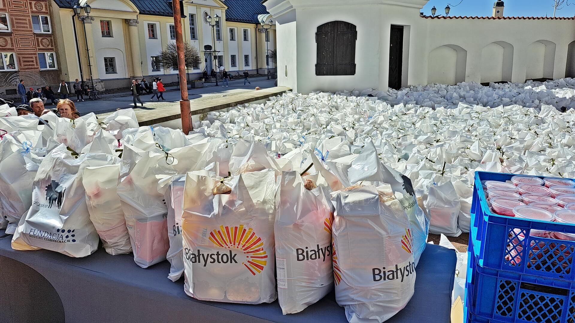 Kilkaset paczek wielkanocnych z żywnością trafiło w sobotę (30.03) do mieszkańców Białegostoku i regionu. Wydane zostały wczesnym popołudniem na placu przed białostocką archikatedrą w ramach akcji Fundacji Rodziny Czarneckich. Po taką pomoc ustawiła się długa kolejka osób potrzebujących.