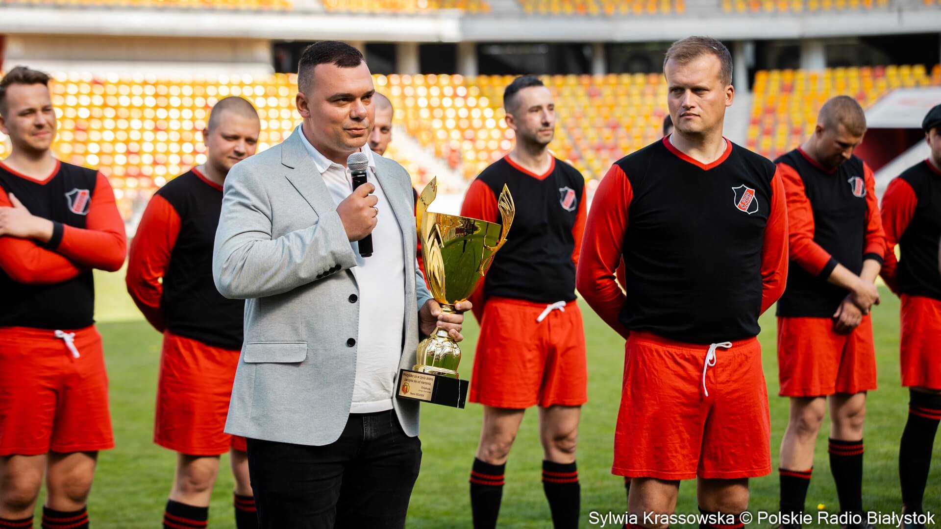 Białystok przed II wojną światową był miastem, w którym te koszary i pułk odgrywały dużą rolę. Cieszę się, że kibice podjęli się tego zadania, żeby nieco młodszym białostoczanom o tym przypominać i że są w tym zakresie niezwykle aktywni, bo warto pamiętać o tej przeszłości naszego miasta. Jak budujemy przyszłość, to musimy pamiętać o przeszłości - mówi zastępca prezydenta Białegostoku Rafał Rudnicki.