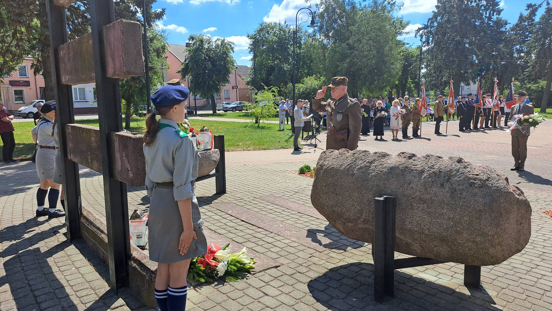Pokaz wydarzeń sprzed lat poprzedziła msza w intencji ofiar sybiru i ich rodzin oraz złożenie kwiatów przed pomnikiem w centralnym miejscu placu przed kościołem.