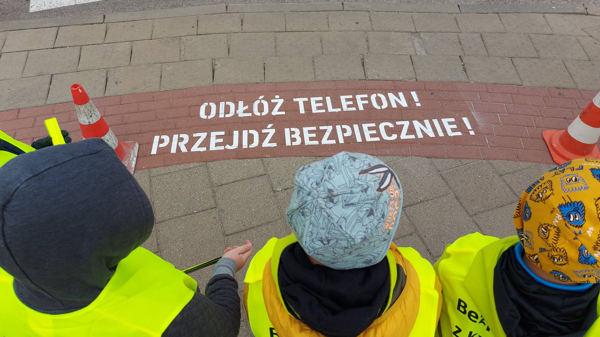 Hasła namalowane białą farbą mają przypominać, że skupienie na tym, co się dzieje na jezdni, a nie w smartfonie może mieć wpływ na zdrowie i życie pieszych.