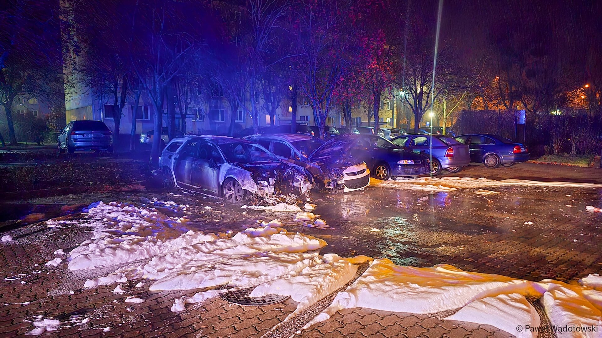 Na miejsce przyjechały dwa zastępy pożarnicze. Podjęliśmy działania polegające na zabezpieczeniu miejsca zdarzenia, ugaszeniu samochodów za pomocą piany ciężkiej. Po ugaszeniu pożaru samochody zostały sprawdzone. Nie wykazują żadnego dodatkowego zagrożenia - mówił starszy kapitan Jacek Zakrzewski.