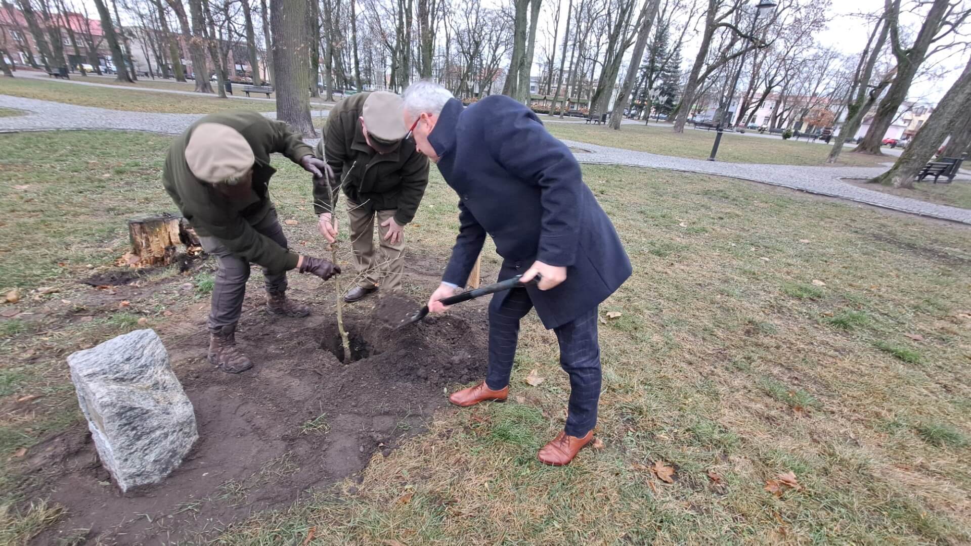 Leśnicy, władze miasta i powiatu posadzili w poniedziałek (9.12) w Augustowie trzy dęby. To akcja z okazji 200-lecia Nadleśnictwa Augustów.