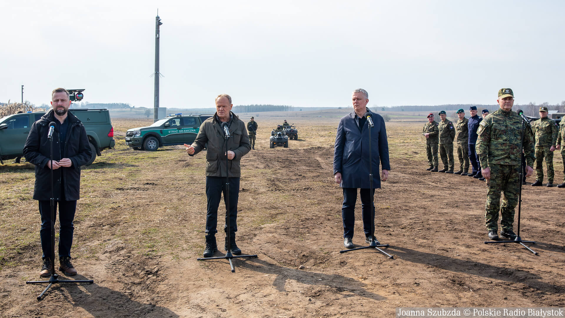 Radio Białystok | Wiadomości | Wiadomości - Premier Donald Tusk z szefami MON i MSWiA na polsko-białoruskiej granicy [zdjęcia, wideo z konferencji]